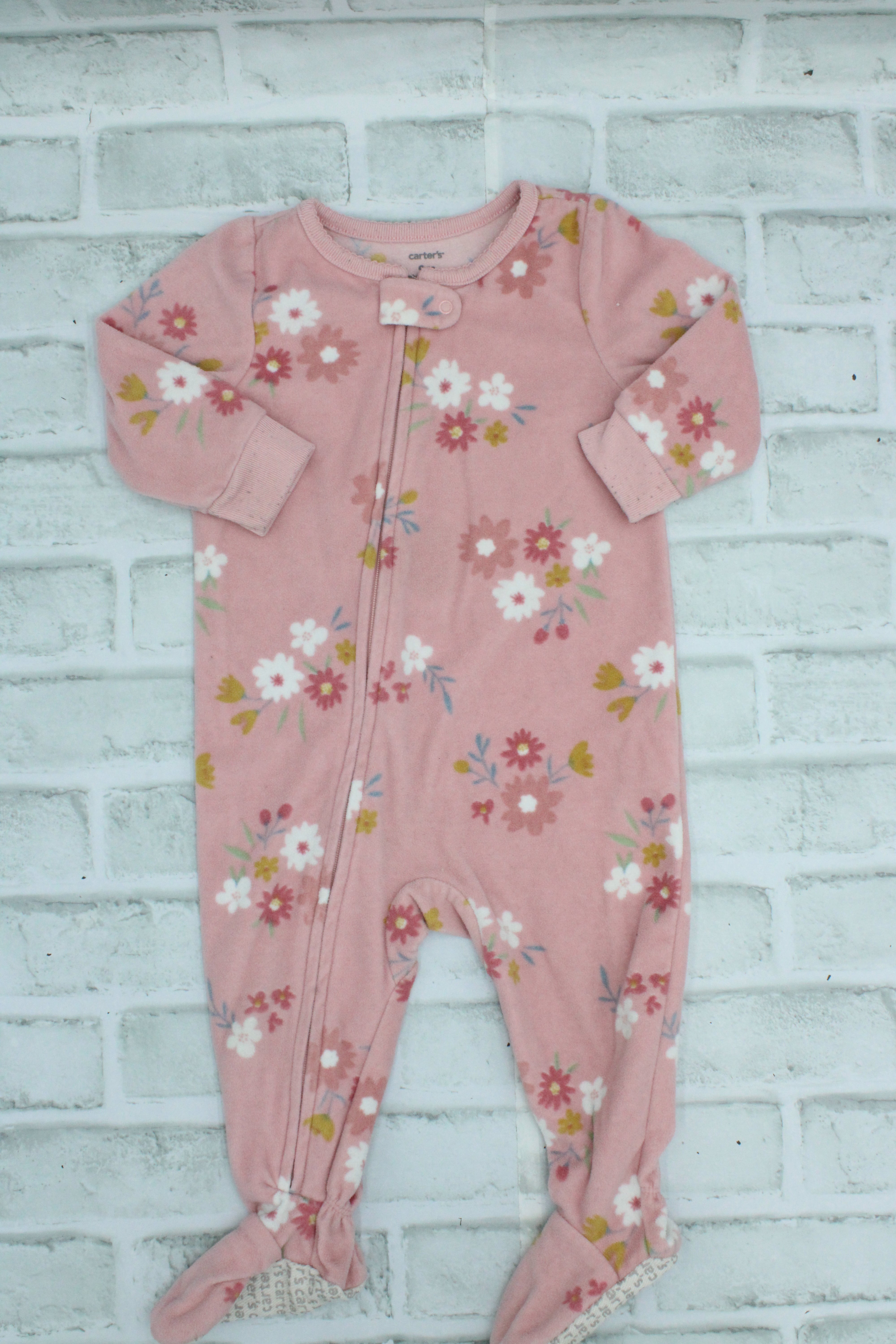 Carters, Pink Fleece Floral Sleeper, 9 Months