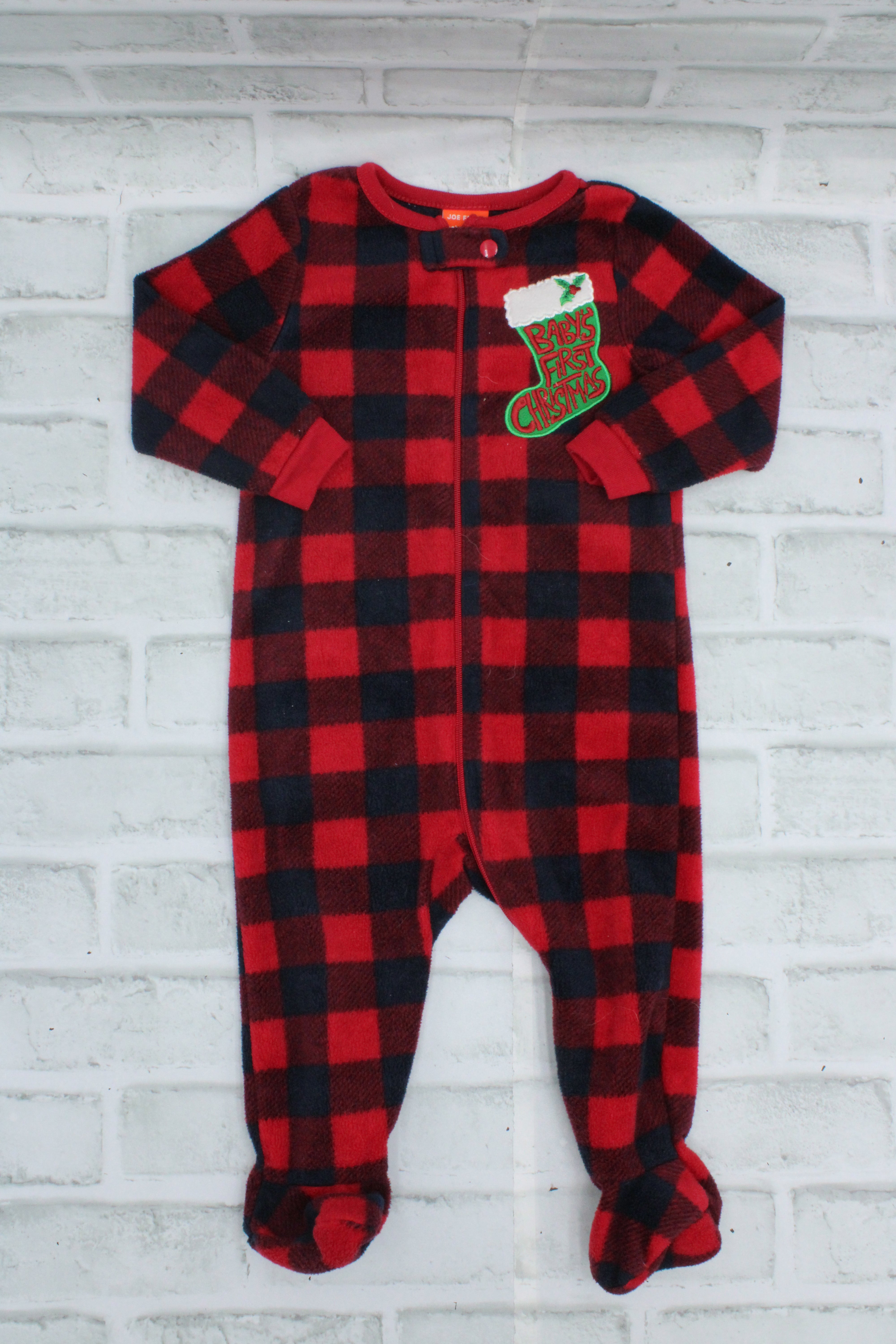 Joe Fresh, Red Plaid "Baby's First Christmas" Sleeper, 6-12 Months