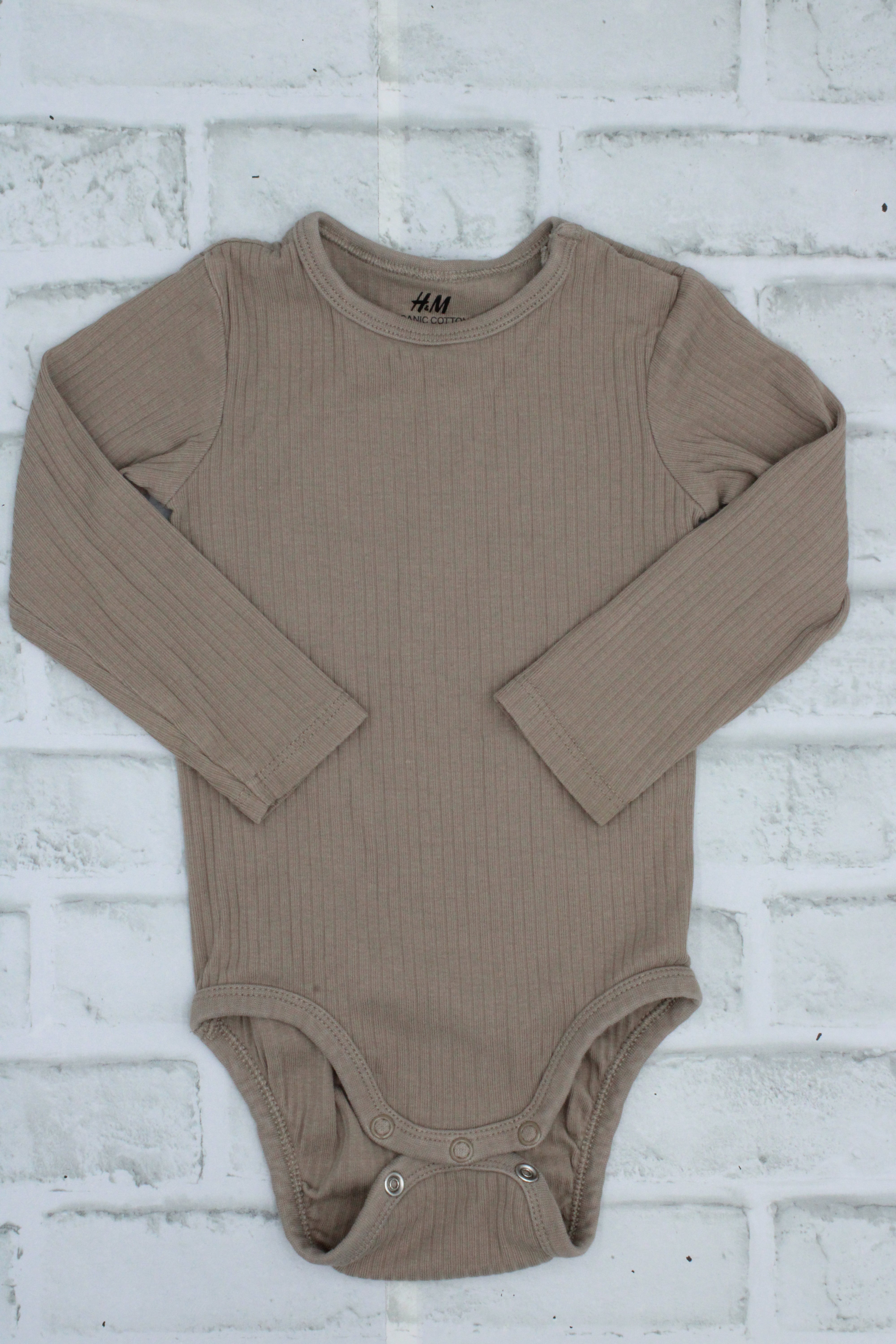 H&M, Tan Ribbed Organic Cotton Diaper Shirt, 9-12 Months