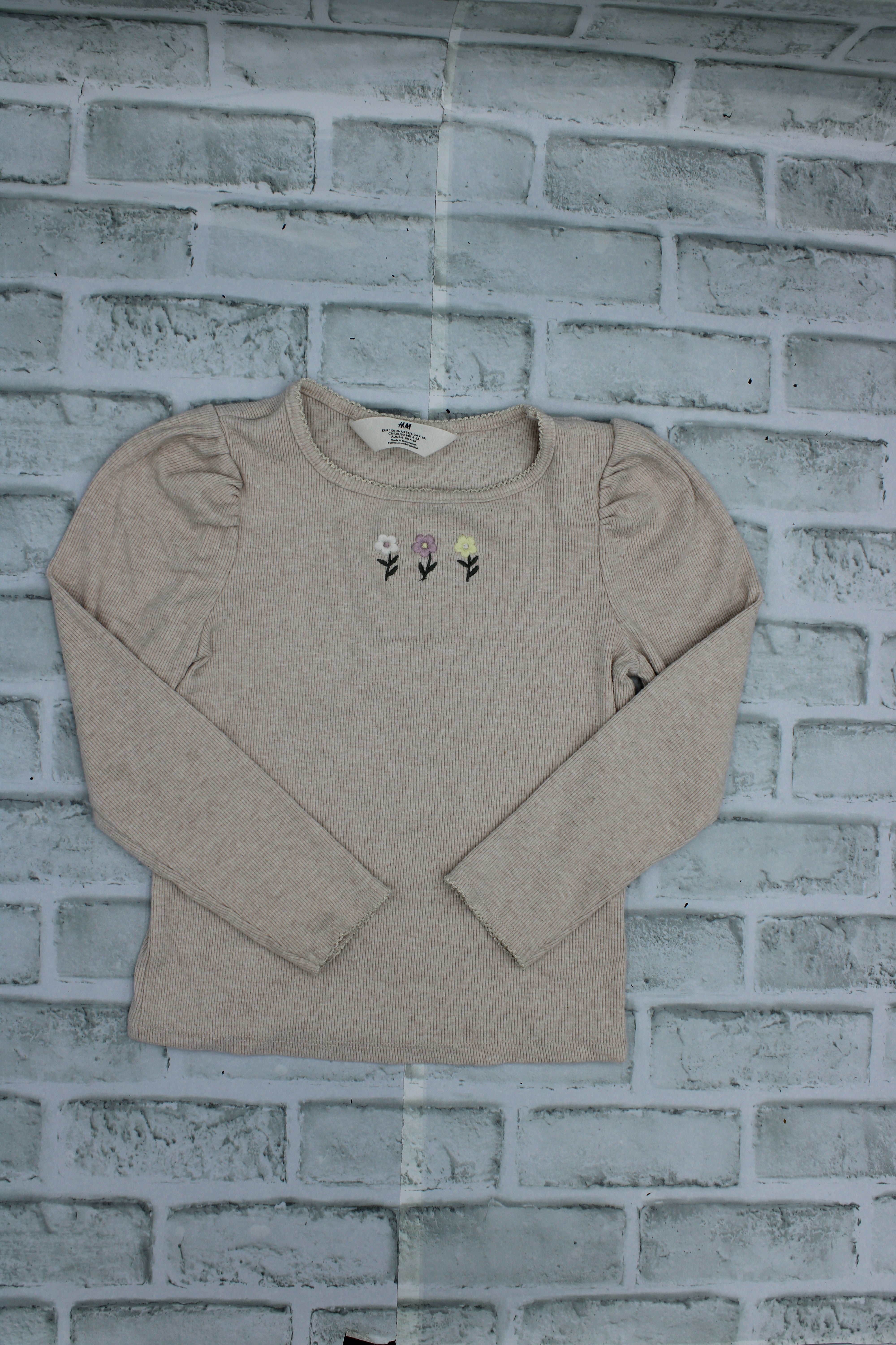 H&M, Beige Long Sleve with Flowers, Size 4-6