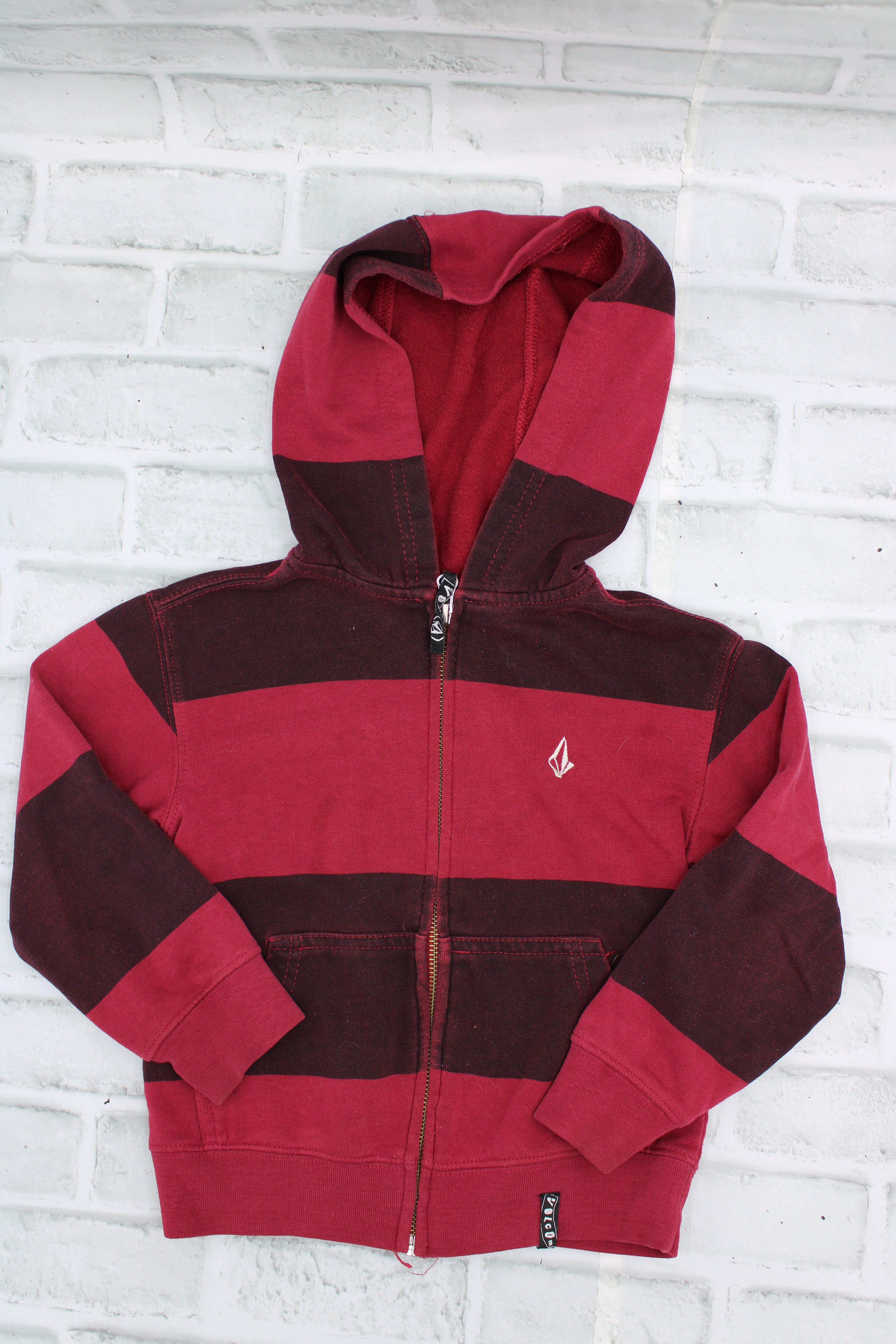 Volcom, Red Striped Hoodie, small stain on front, 3T