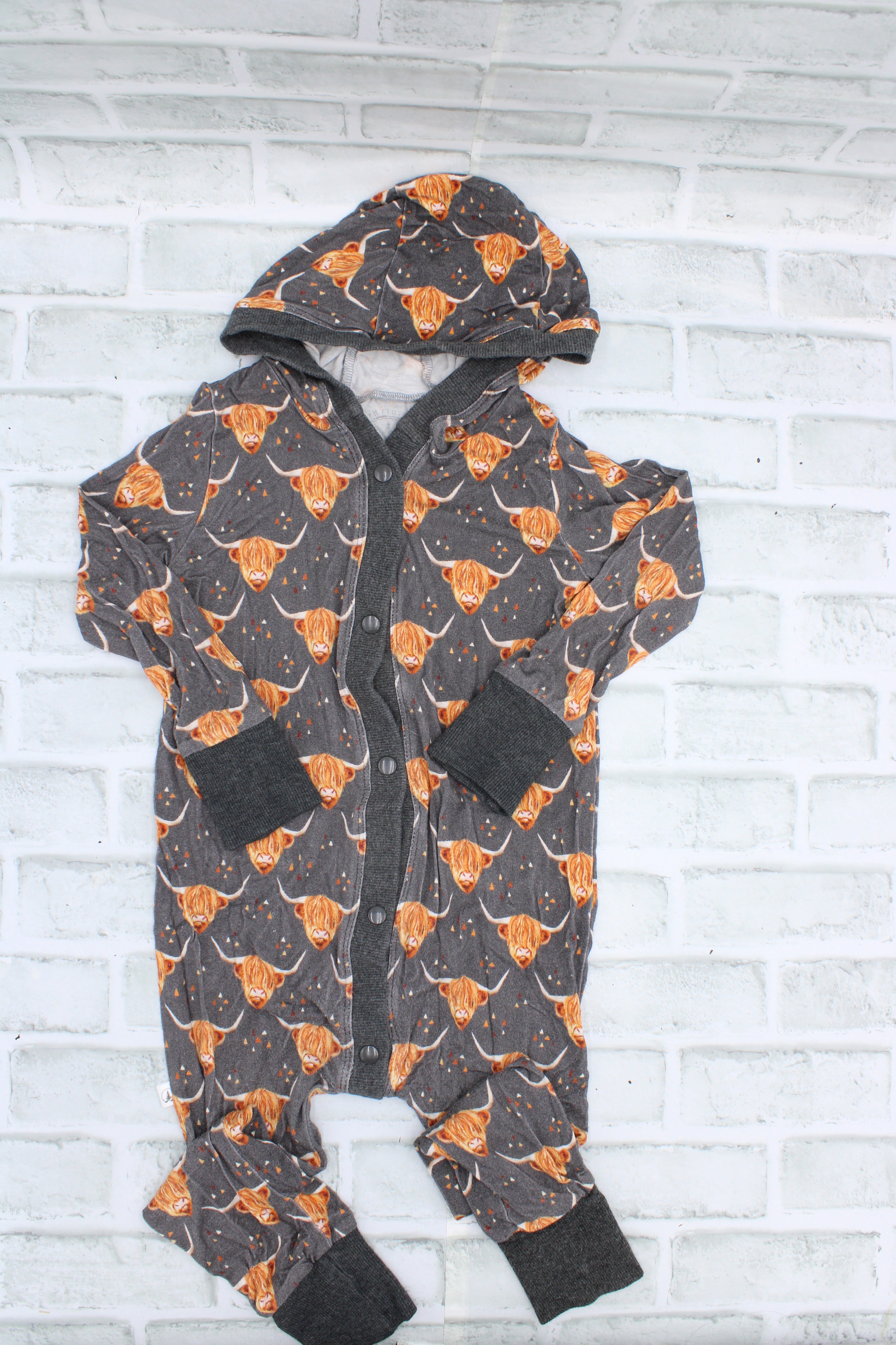 Fernweh Clothing Co., Hooded Snap Up Highland Cow, Light Wear, 3T