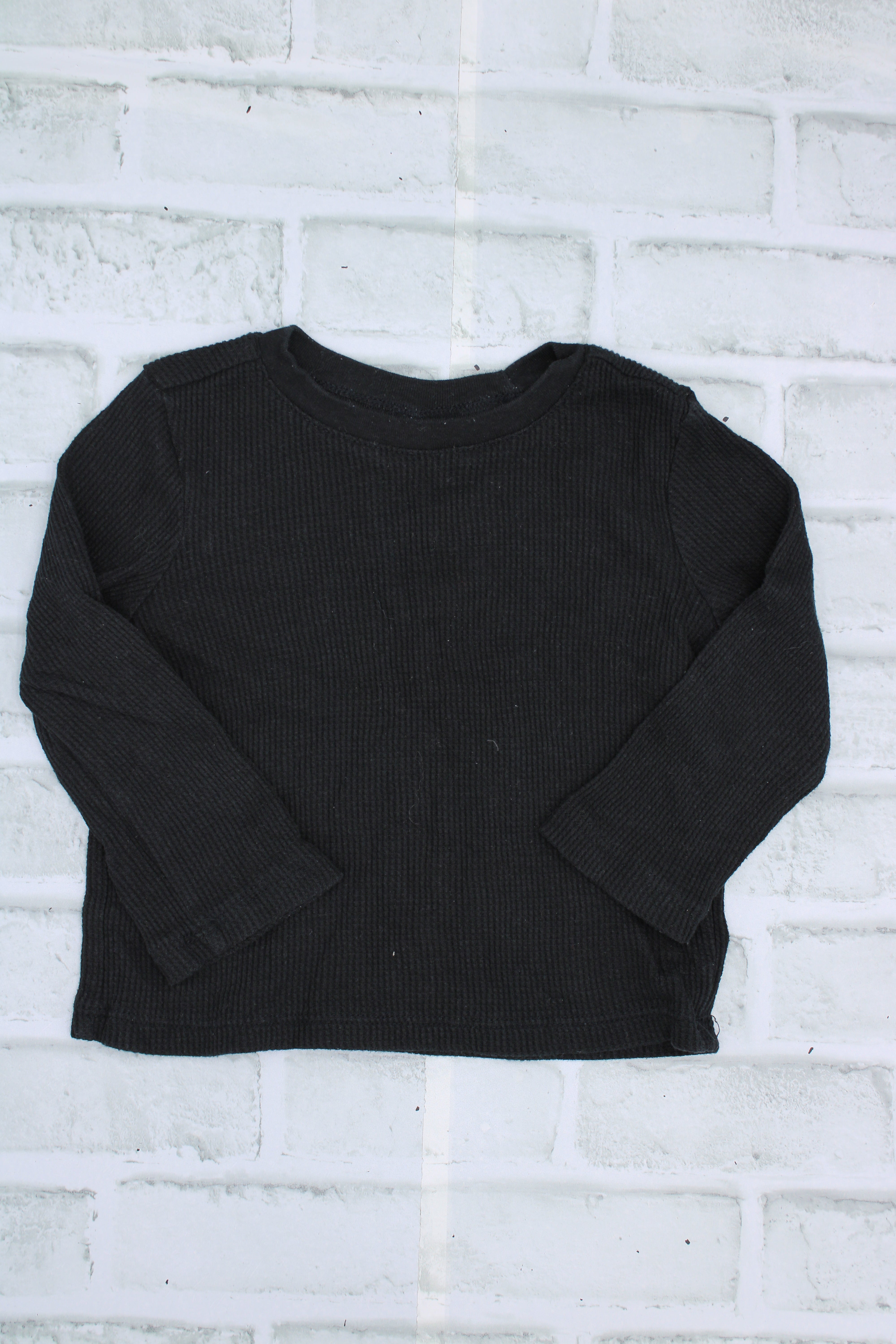 Old Navy, Black Waffle Knit Long Sleeve, 18-24 Months
