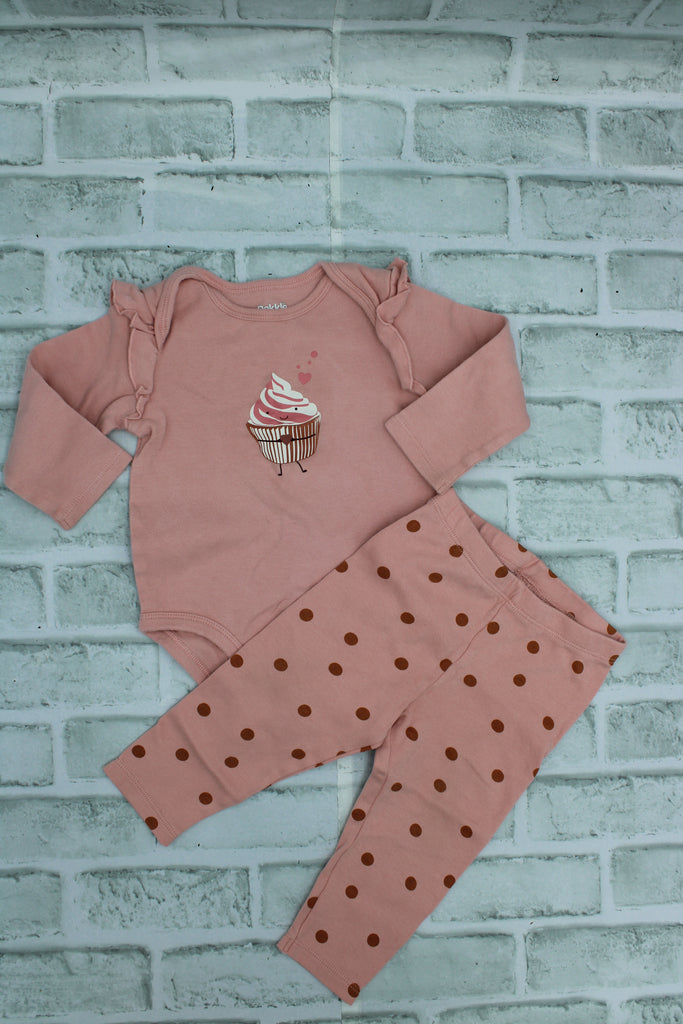 Pekkle, Pink Cupcake diaper shirt set with pants, 12 Months