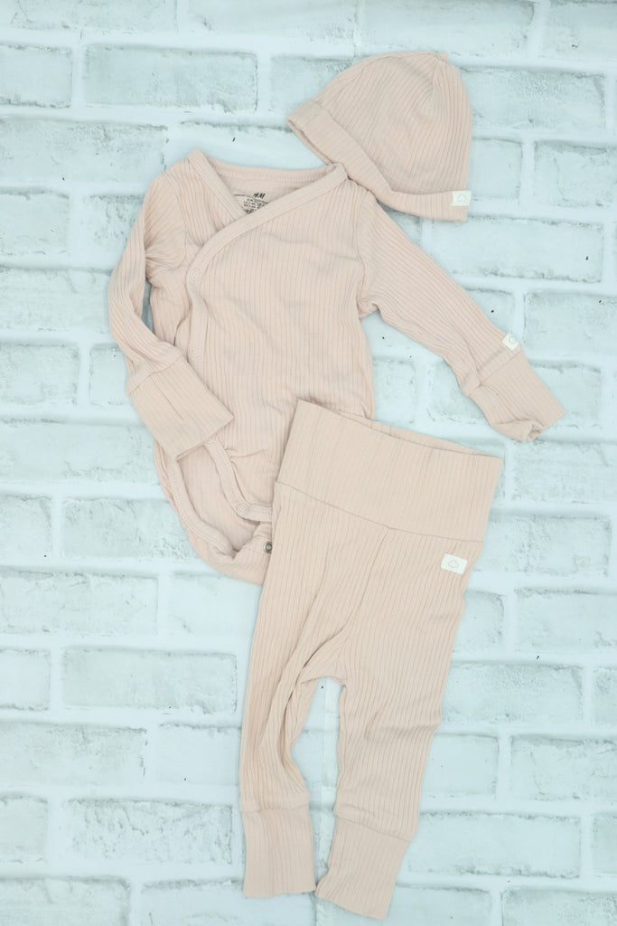 H&M, Ribbed Organic Cotton Set, light stain on arm, 2-4 Months