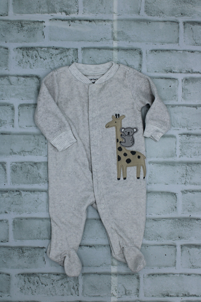 Carters, Grey Giraffe Fleece sleeper LIKE NEW, Newborn