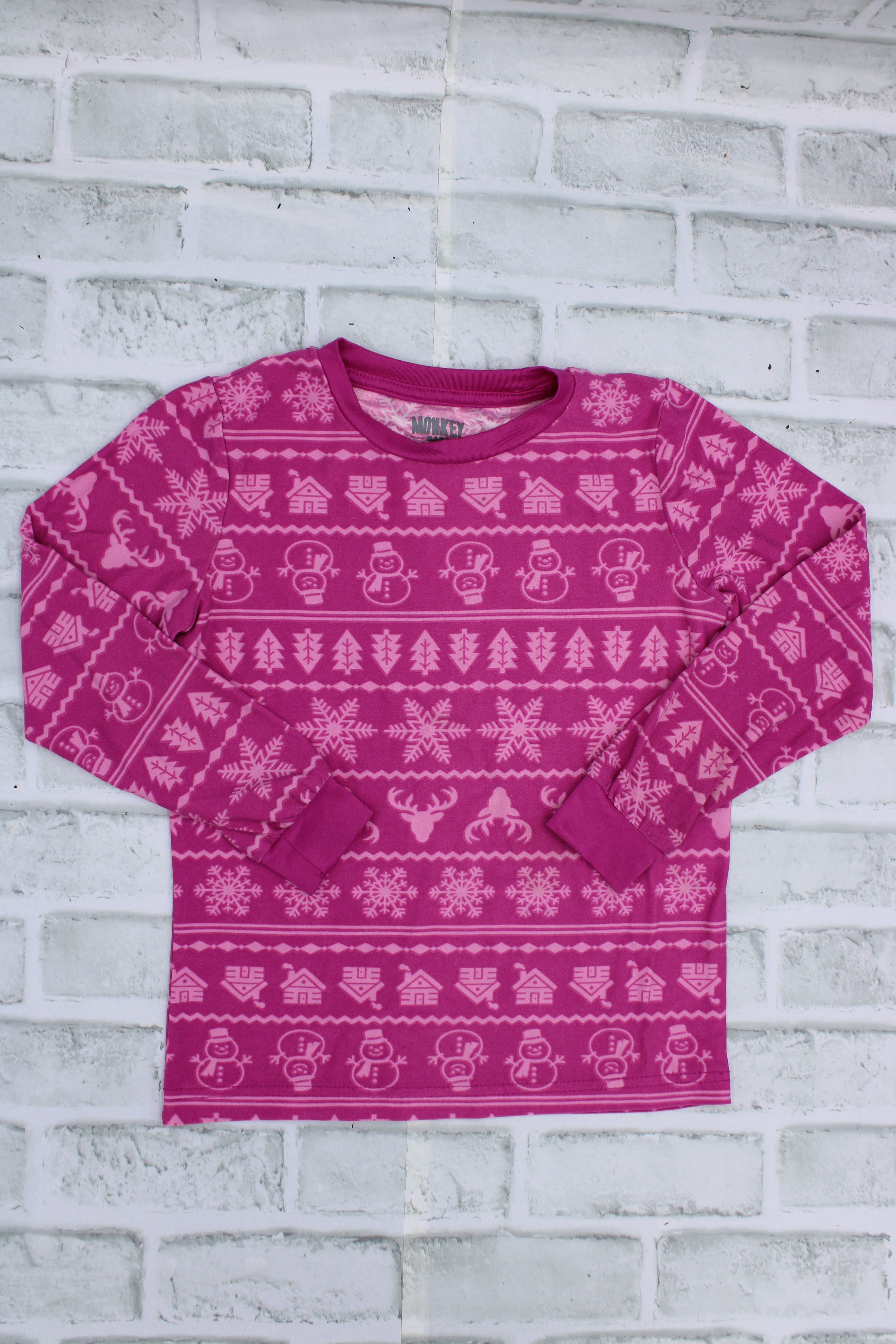 Monkey Bars, Pink Polyester Top with Winter Designs, Size 5-6 is backordered and will ship as soon as it is back in stock.