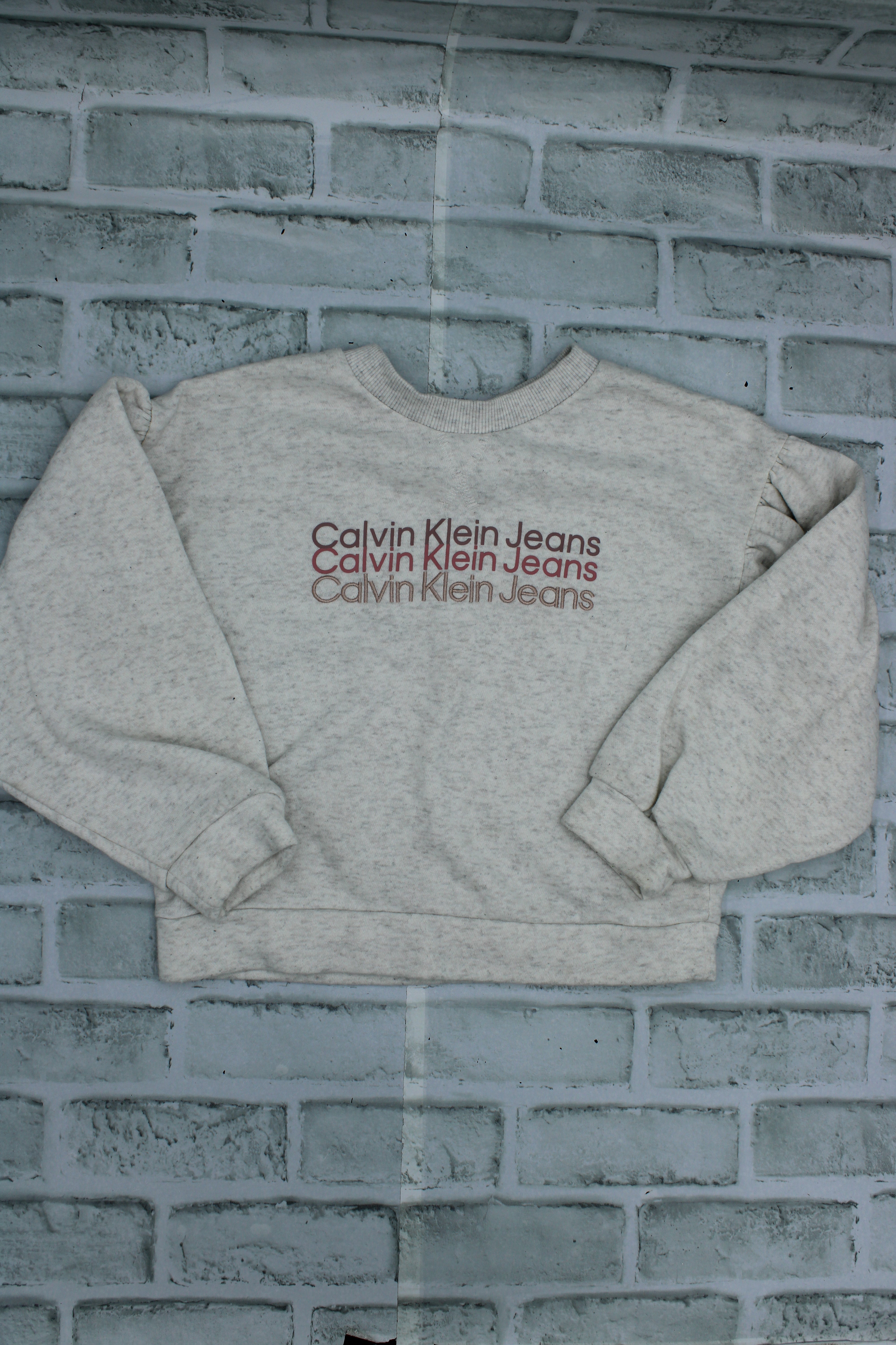 Calvin Klein, Beige crewneck sweater with logo, Size 6 is backordered and will ship as soon as it is back in stock.