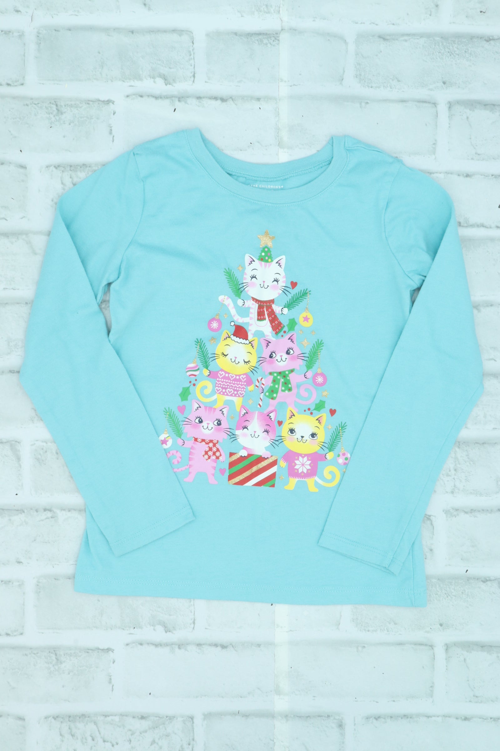 Children's Place, Christmas Cats Long Sleeve, light pilling, 5T is backordered and will ship as soon as it is back in stock.