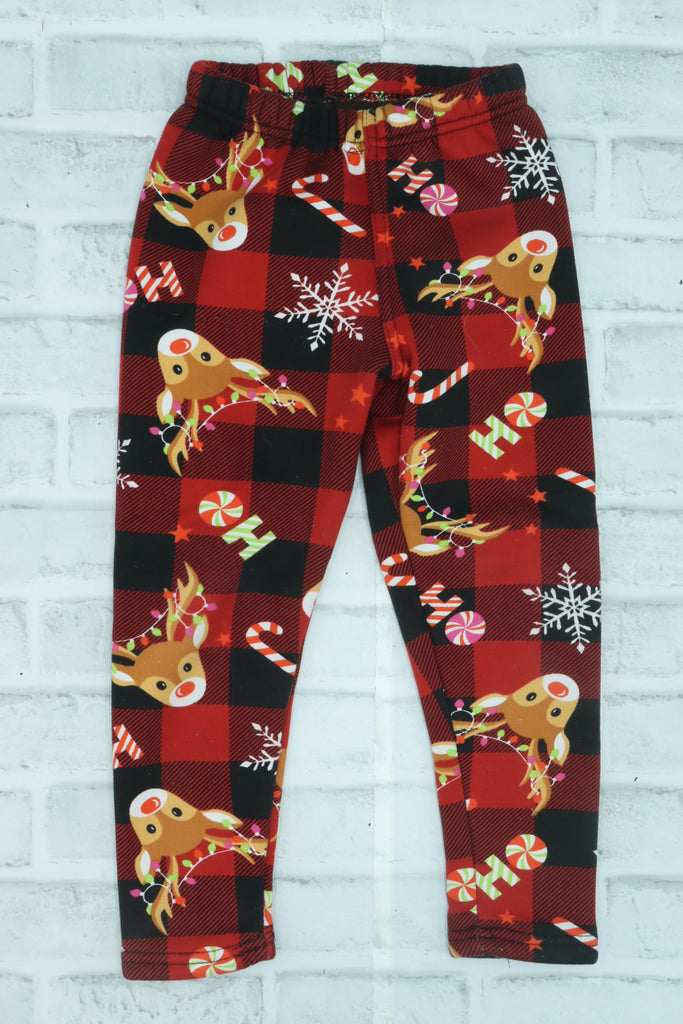 Justy Cozy, Fuzzy Lined Reindeer Leggings, light pilling, Size 5-6
