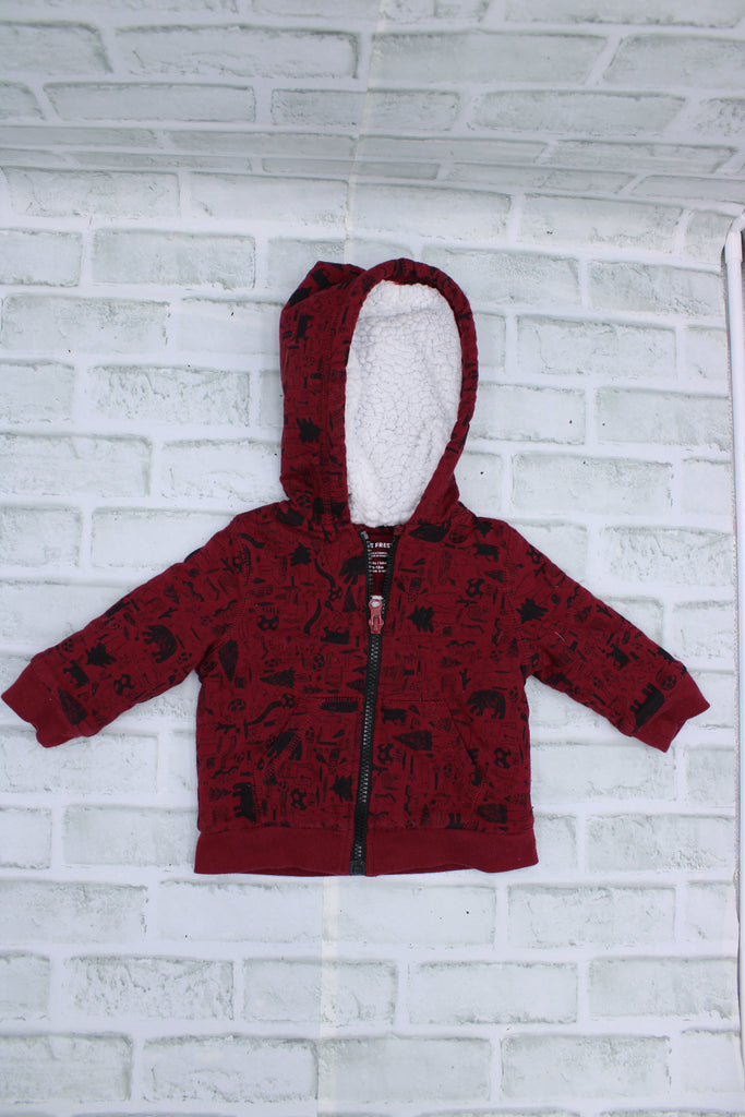 Joe Fresh, Red Hoodie with Fleece lined hood, Size 6-12 Months