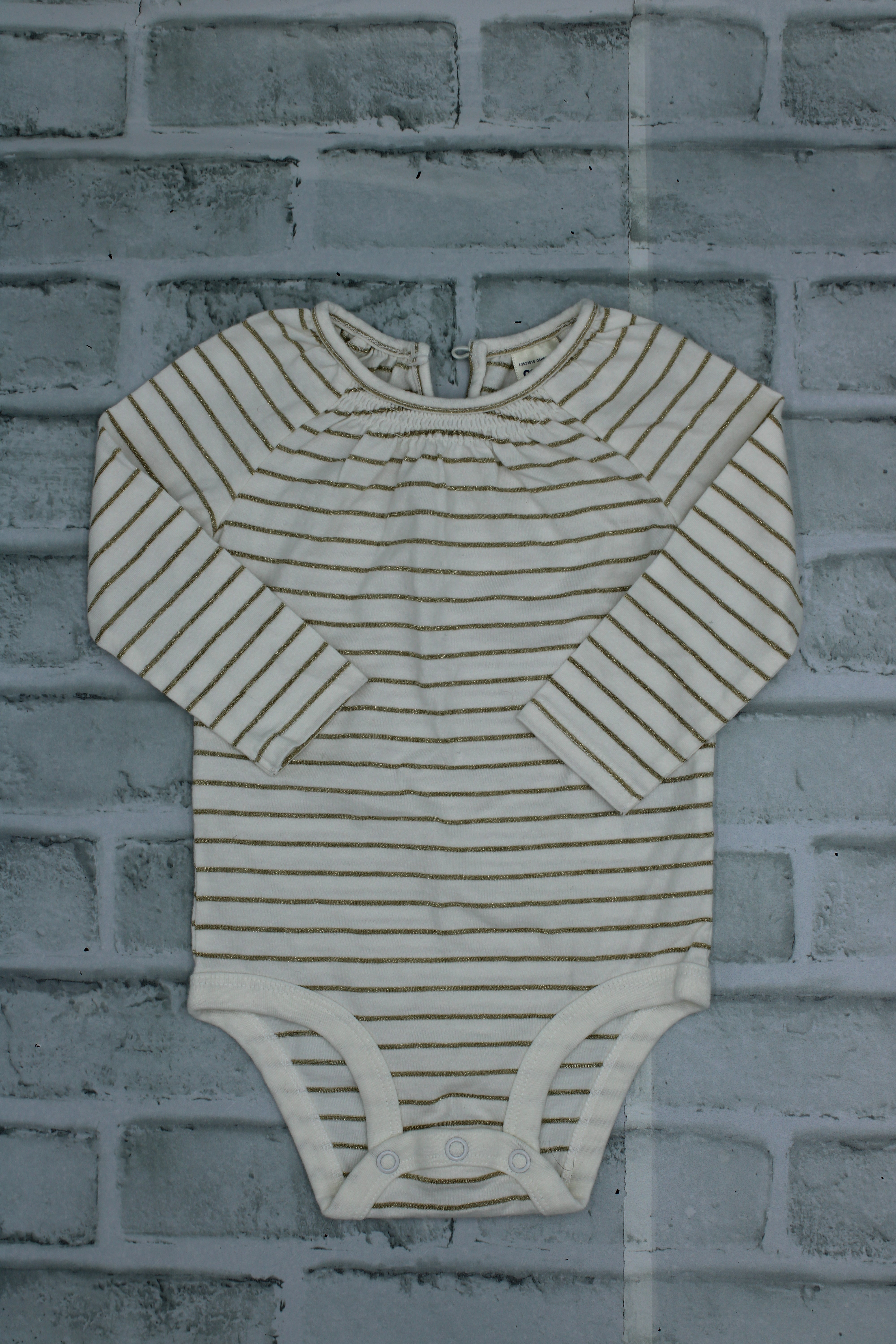 Osh Kosh, White Striped Diaper Shirt, 6 Months
