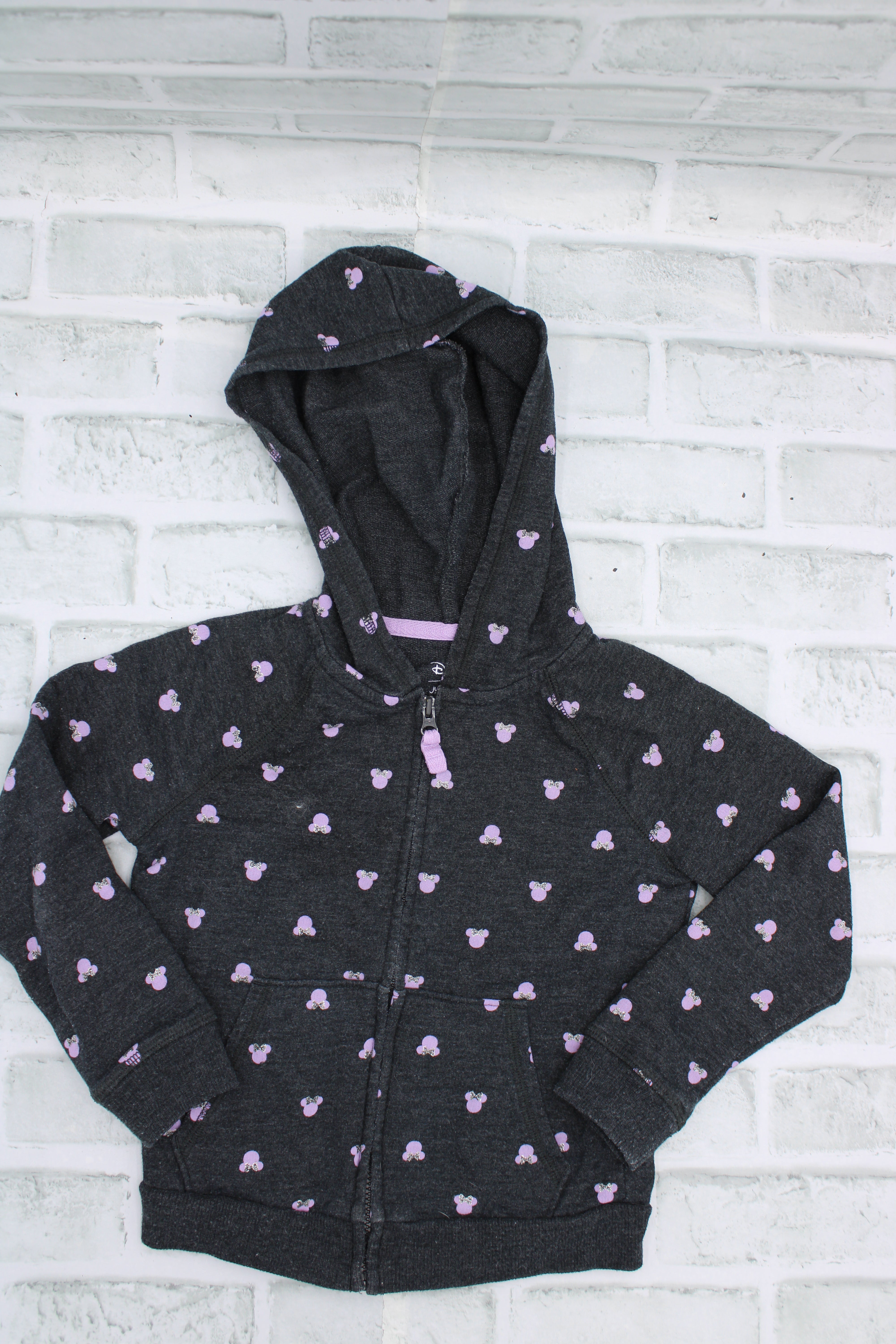 Disney/Jumping Beans, Dark Grey Zip up with purple minnie mouse, 4T