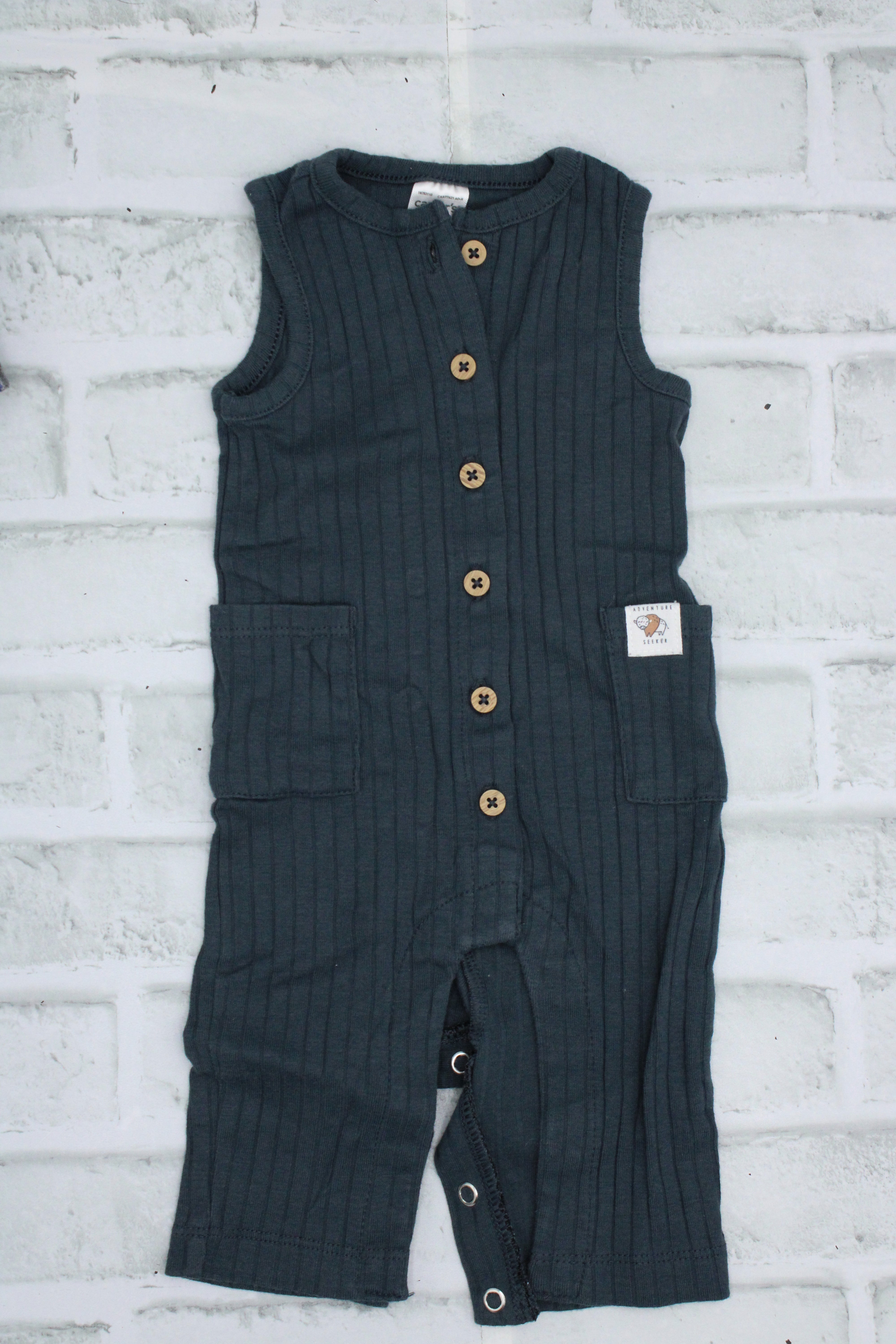Carters, Blue Ribbed Sleeveless Romper, 3 Months is backordered and will ship as soon as it is back in stock.
