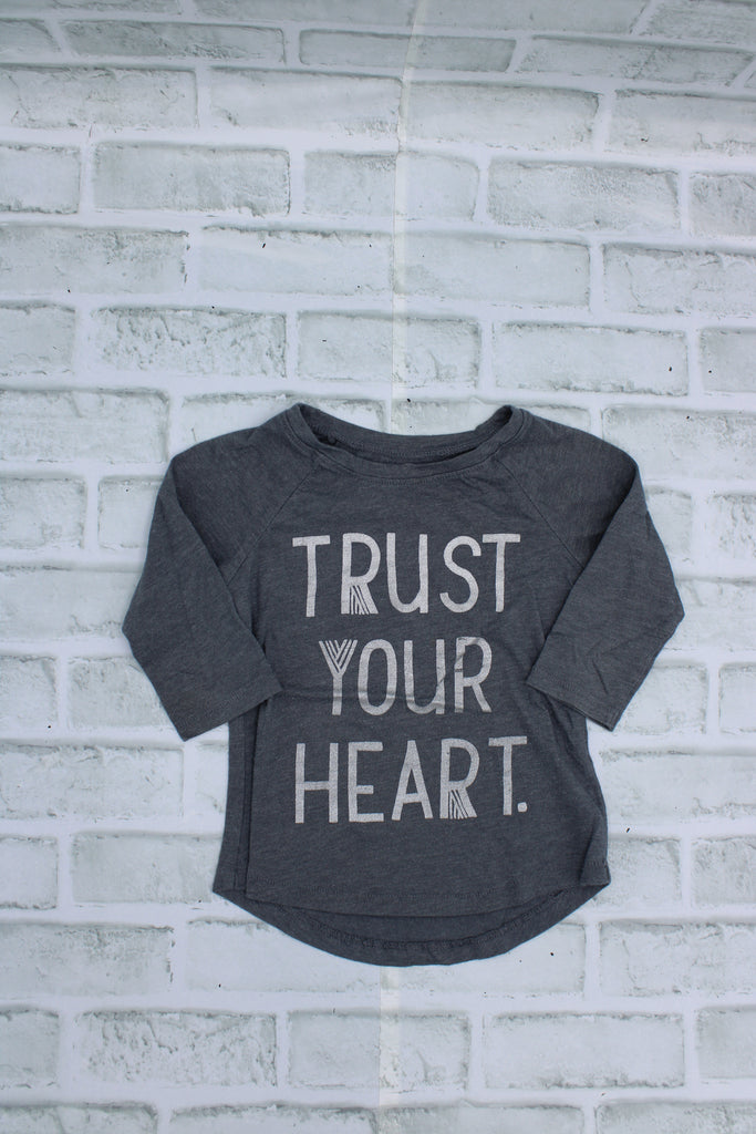 Old Navy, "Trust your Heart" Grey long sleeve, some piling GUC, 4T