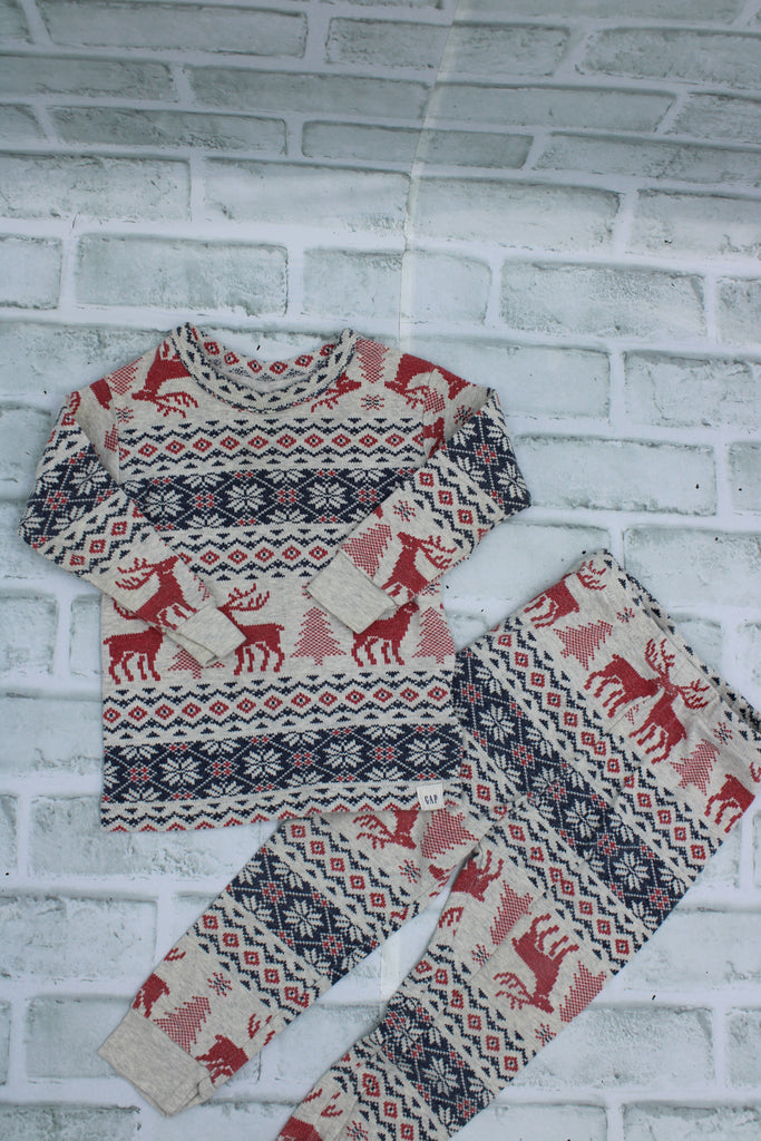 Baby Gap, Red Reindeer PJ Set, some loose stitching in back of waist band, 12-18 Months