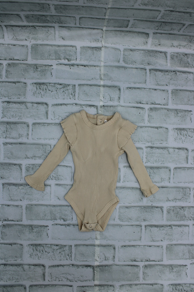 Unknown Brand, Beige diaper shirt with ruffle shoulders, Size 80 (Approx 9 Months)