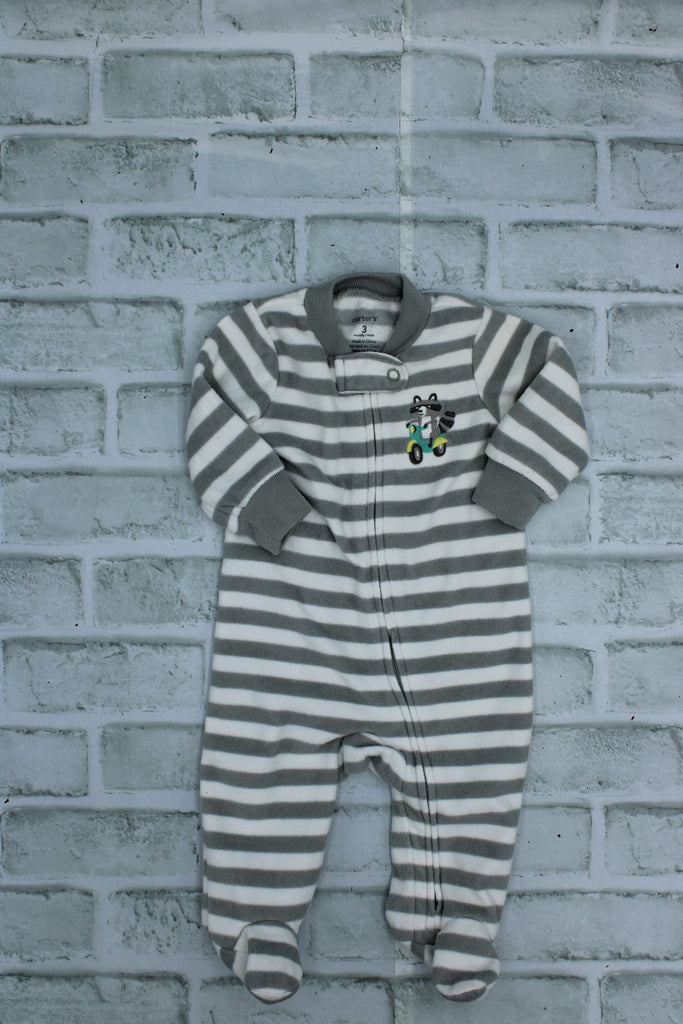 Carters, Grey Striped Fleece sleeper with racoon, 3 Months