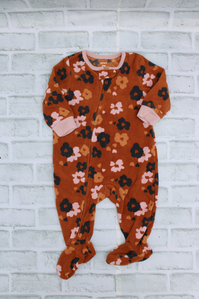 Carters, Orange Floral Fleece Sleeper, 6 Months