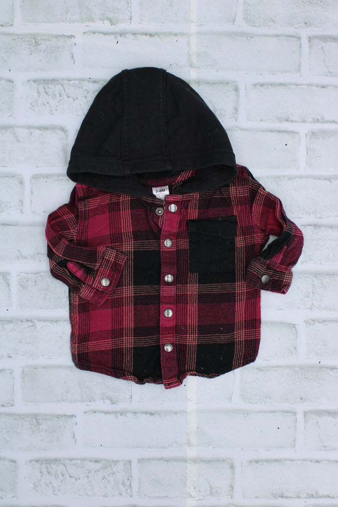 George, Pink Plaid Hoodie button up, 3-6 Months