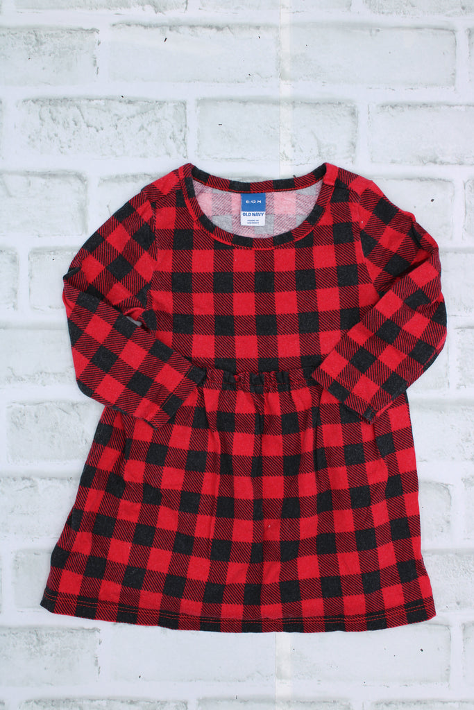 Old Navy, Red Plaid Dress top, 6-12 Months
