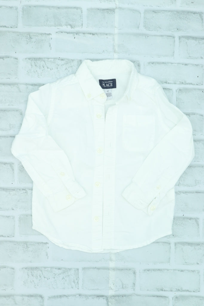 Children's Place, White Button Up Long Sleeve, light discolouration at wrists, 3T