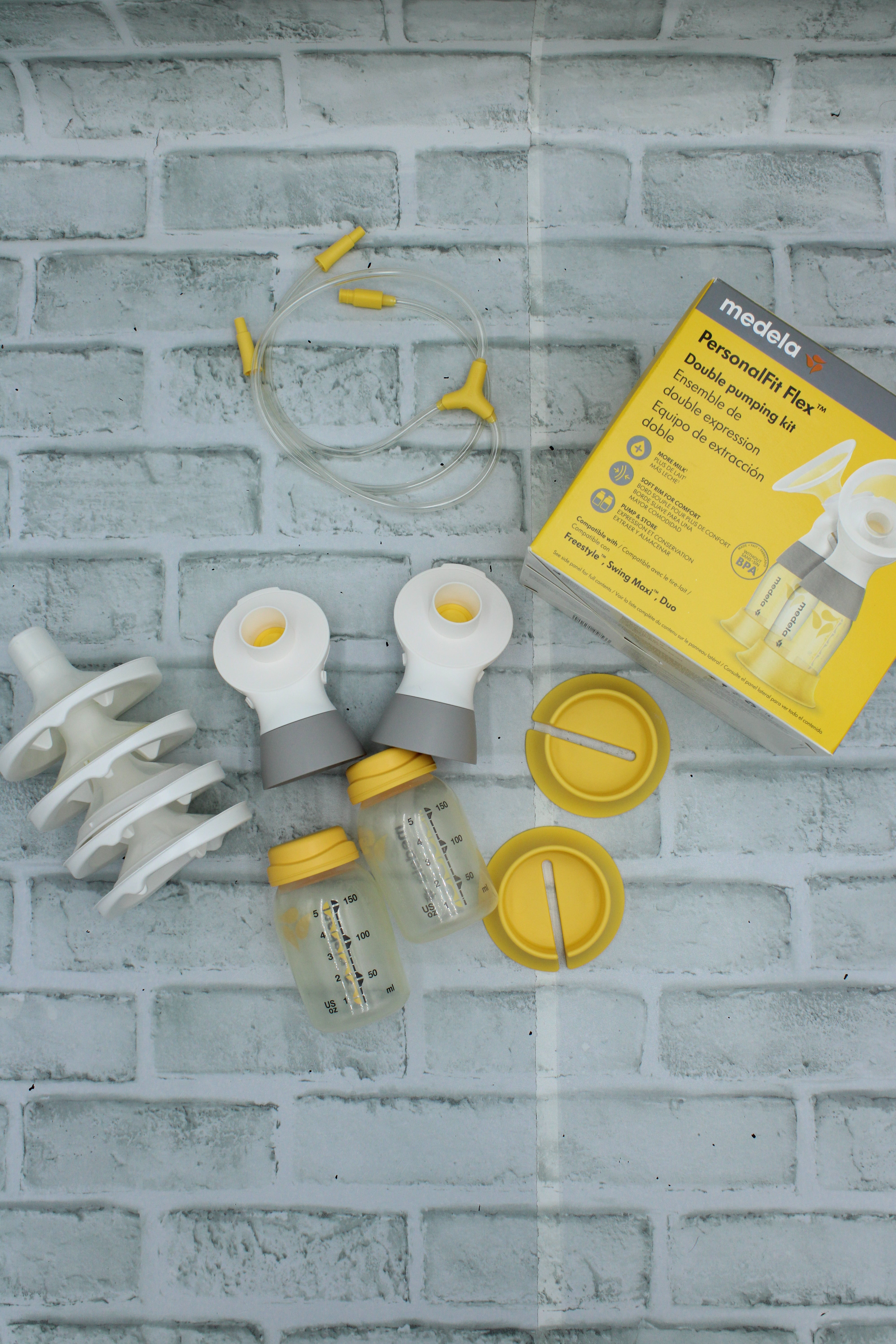Medela, Solo Breast Pump Kit with Double Pumping Kit Accessories. Includes 21mm and 24mm flanges, missing power cord - USB C adapter (See photos for details)