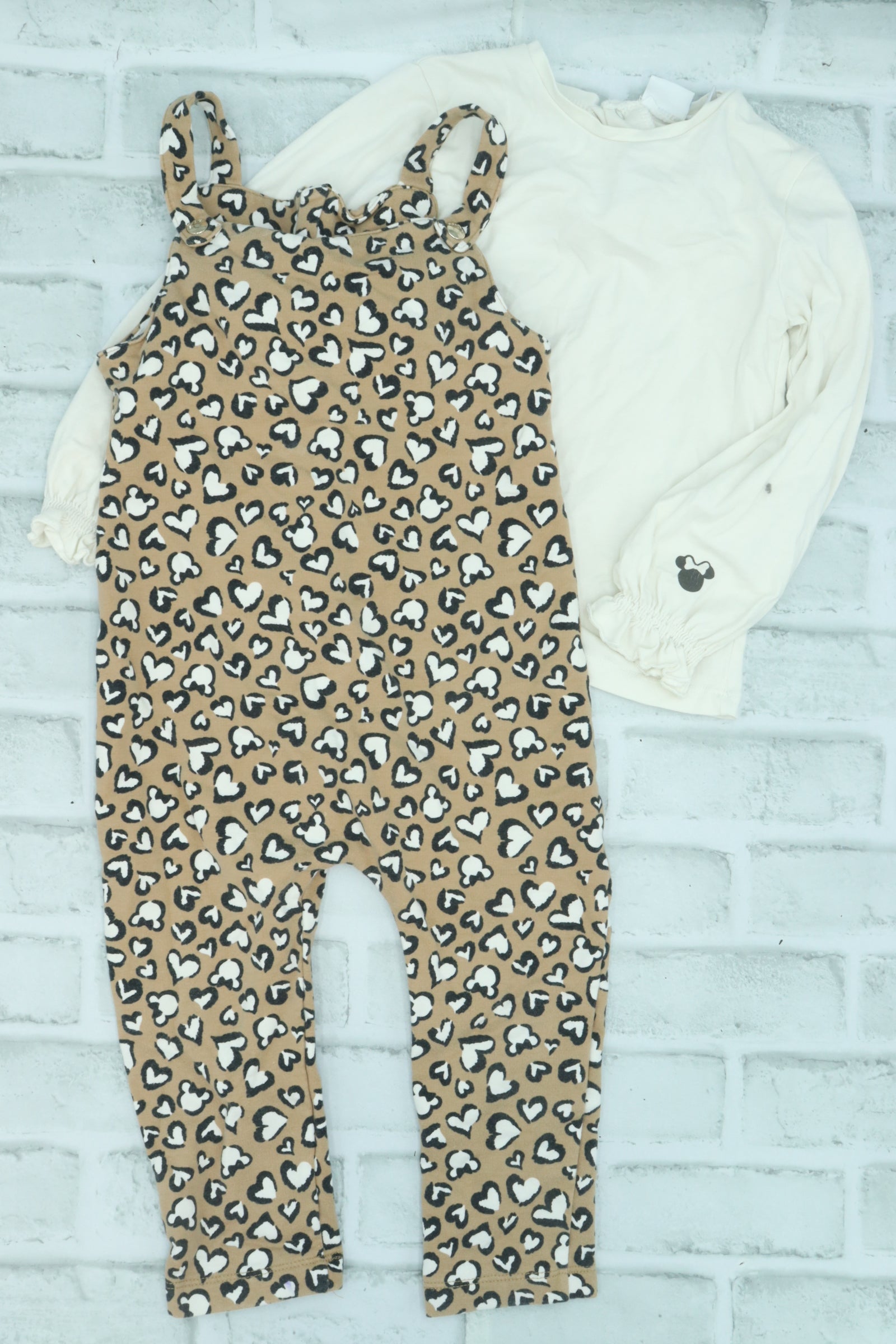 Disney Baby, Patterned Cotton Overalls with Long Sleeve, light staining on top, 3T