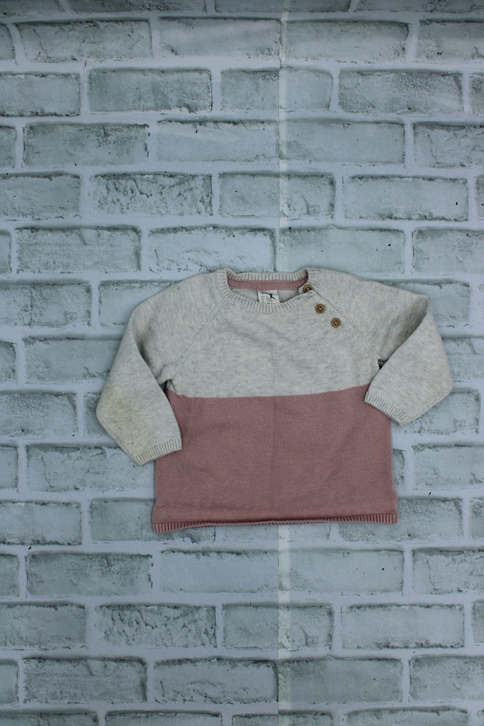 Handmade, Pink knitted sweater with bunny buttons, Aprprox 12 Months