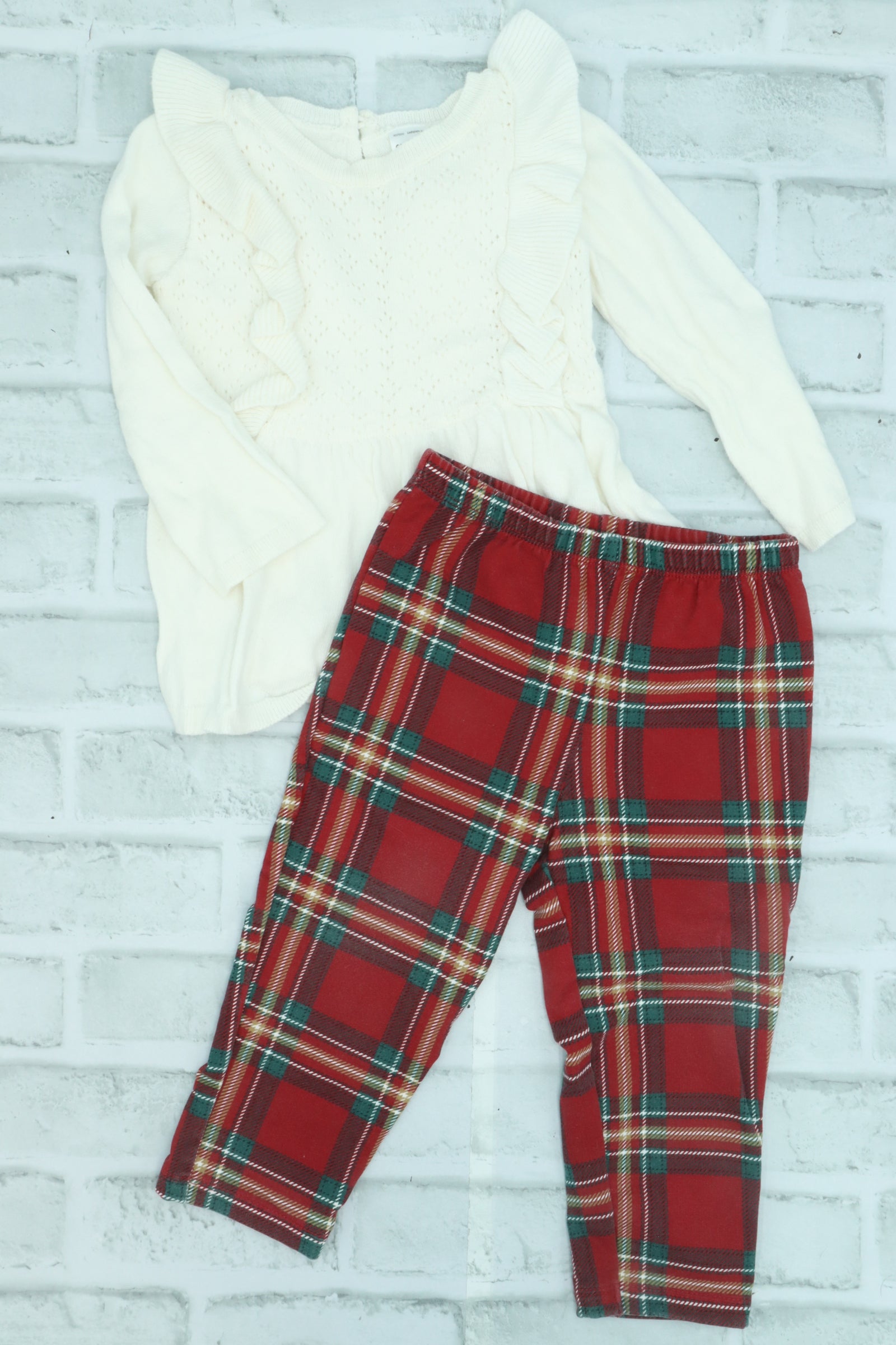 Carter's, White Stretch Knit Top with Fuzzy Lined Plaid Leggings, 18 Month is backordered and will ship as soon as it is back in stock.