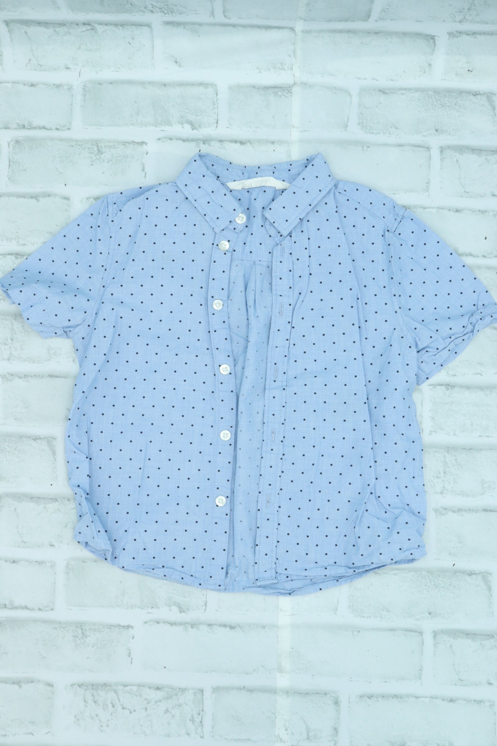H&M, Polka Dot Short Sleeve Button Up, Size 5-6 is backordered and will ship as soon as it is back in stock.