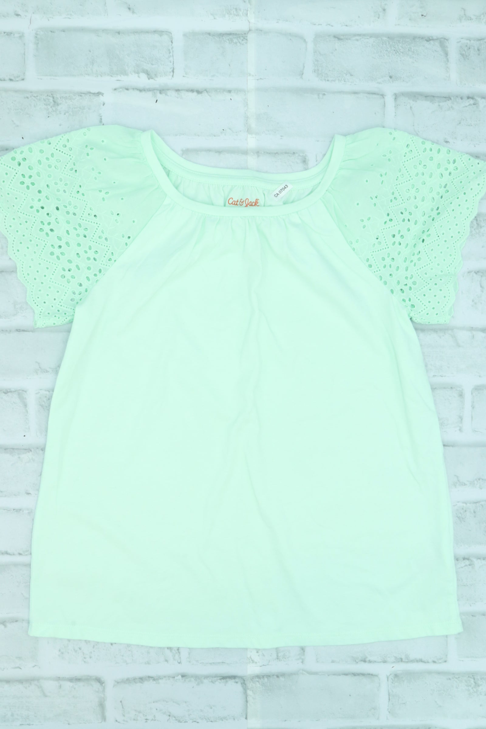 Cat & Jack, Green Top with Eyelet Sleeves, Large (10/12)