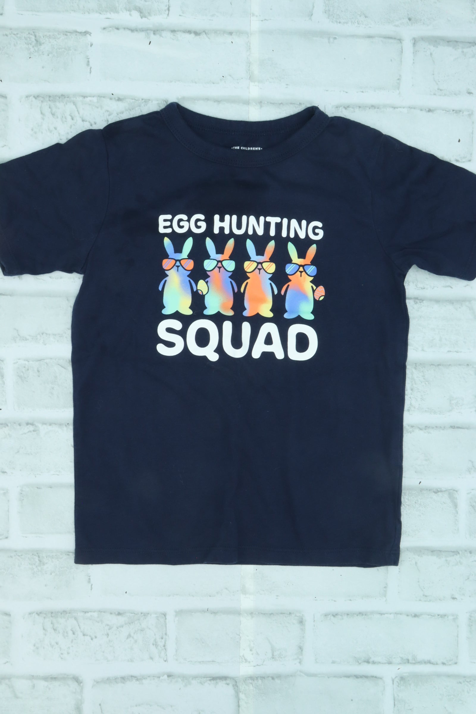Children's Place, "Egg Hunting Squad" T-Shirt, GUC due to staining on chest, 5T