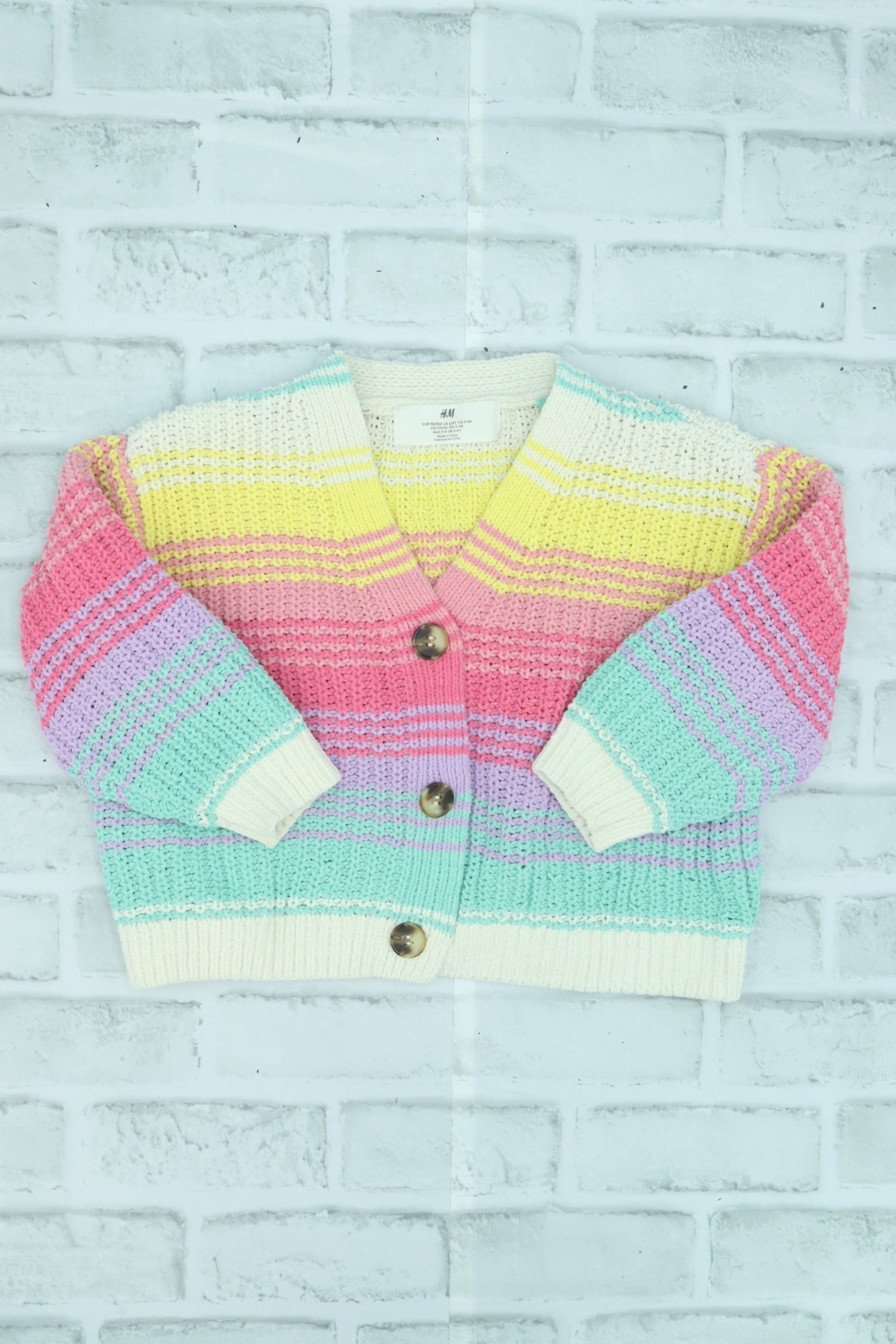 H&M, Rainbow Knit Button Up Sweater, Size 2-4