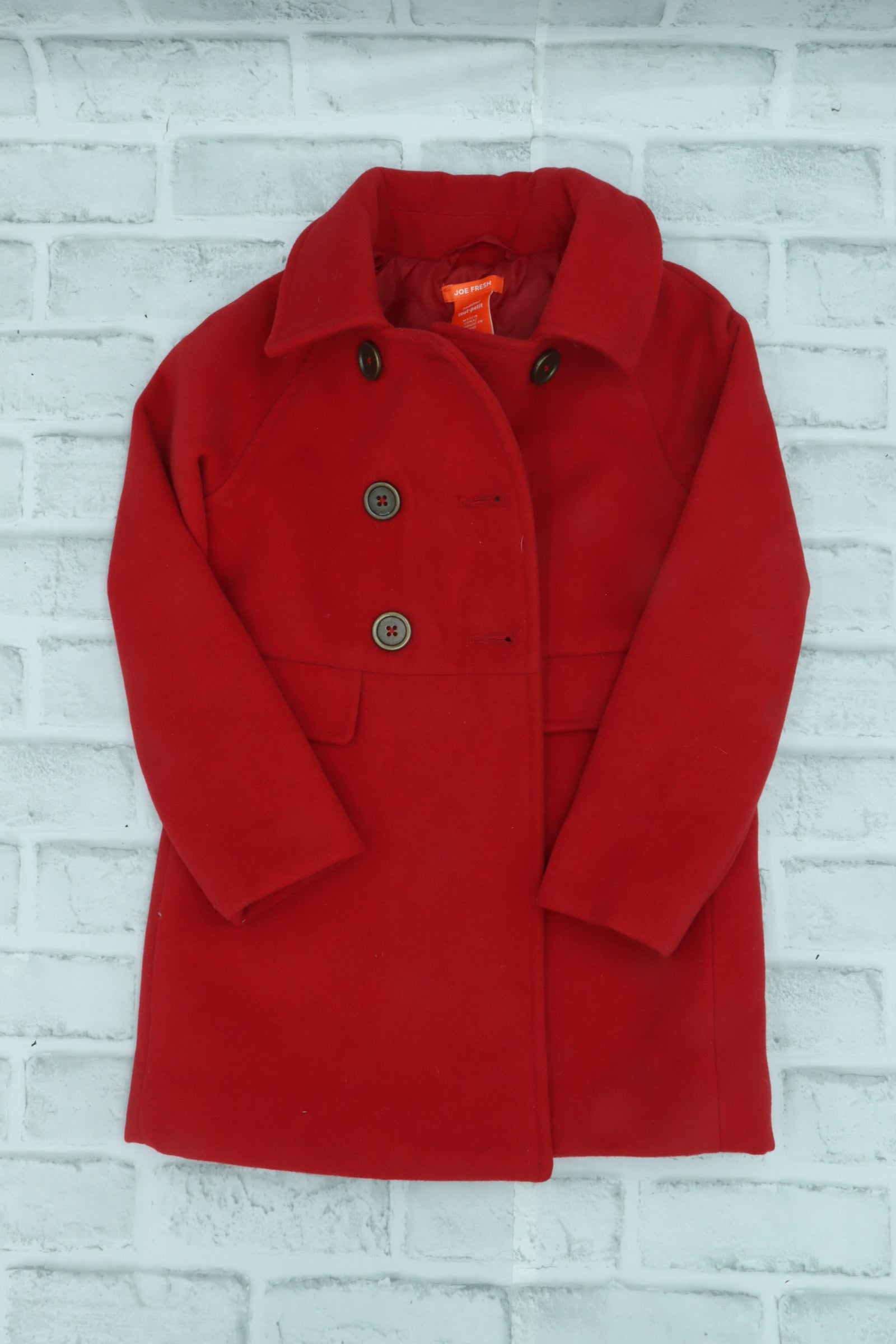Joe Fresh, Red Button Up Dress Coat, small white stain on back, 4T