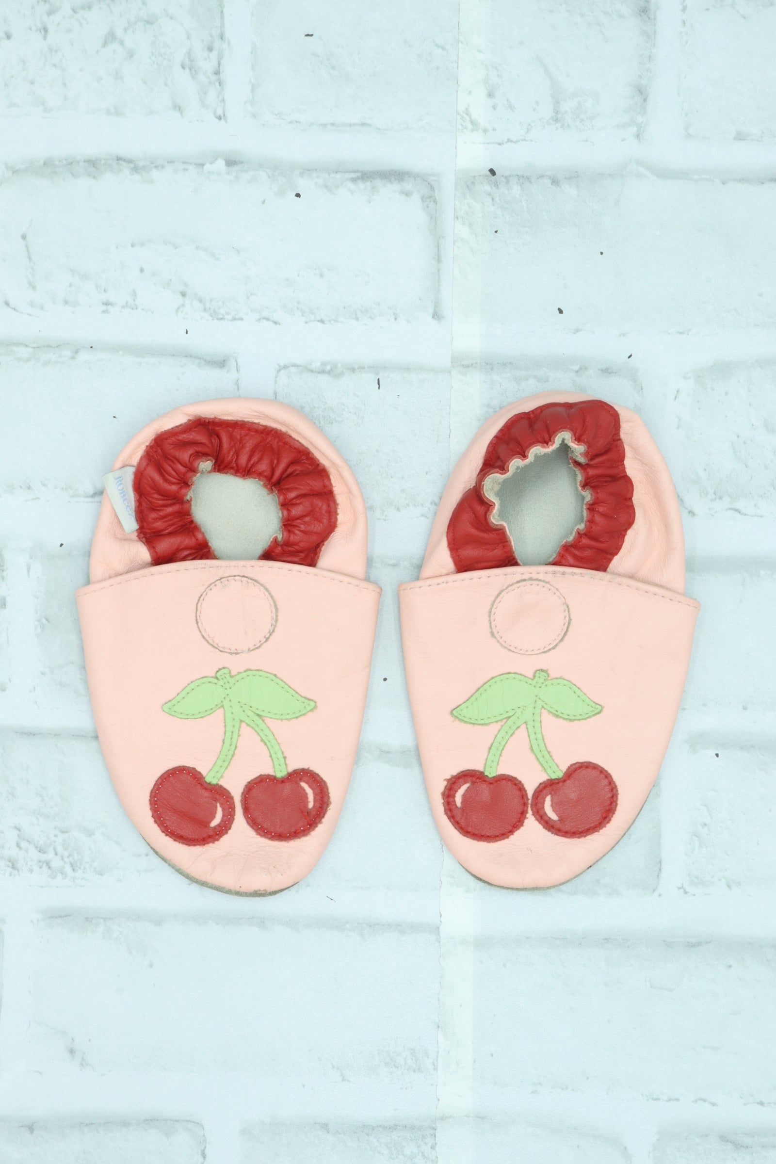 Robeez, Leather Cherry Booties, GUC, Size 2-3 is backordered and will ship as soon as it is back in stock.