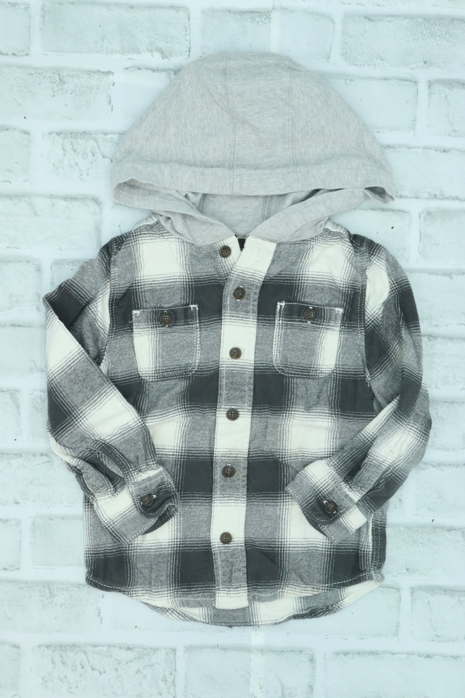 Osh Kosh, Plaid Hooded Button Up, some wear, 3T