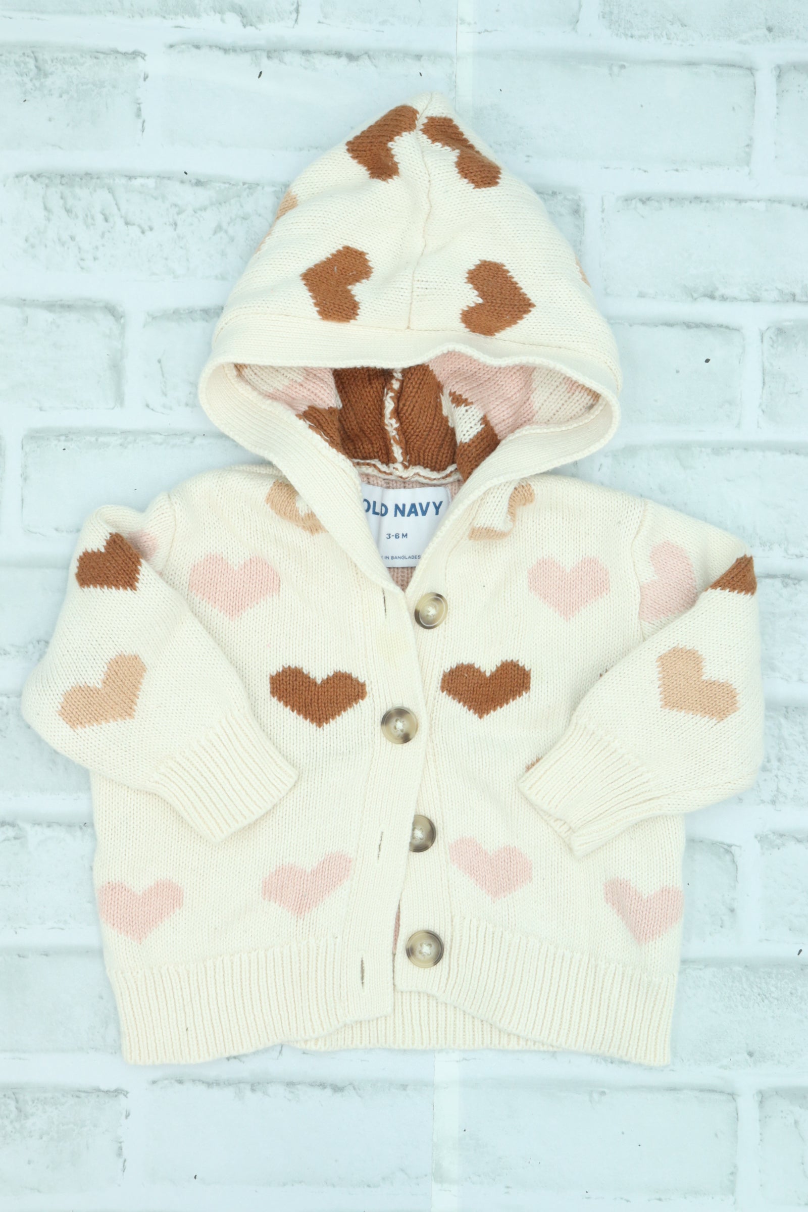 Old Navy, Button Up Heart Sweater, 3-6 Months