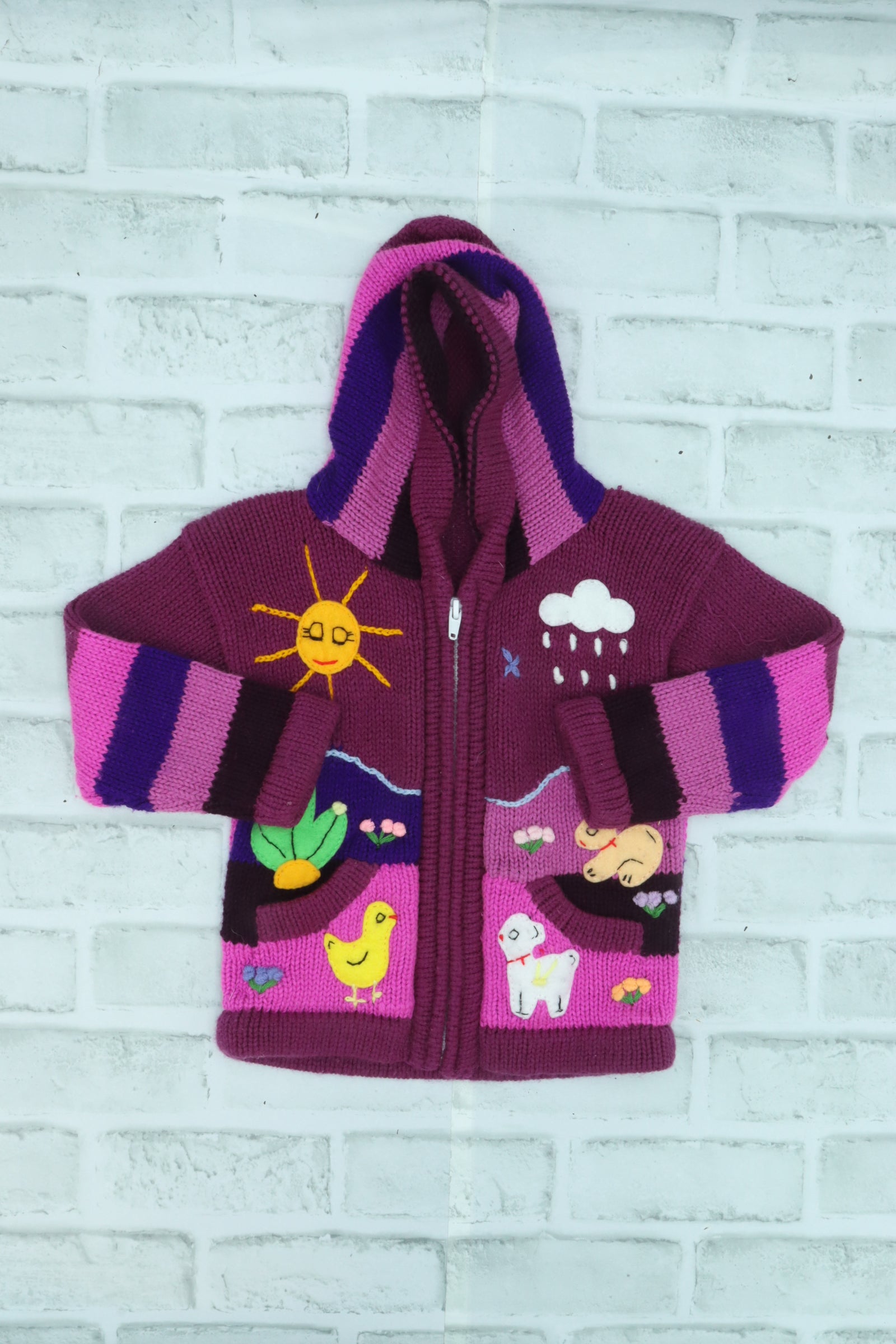 Inkita, Wool Zip Up Sweater, Made in Peru, Approximately 2T-3T