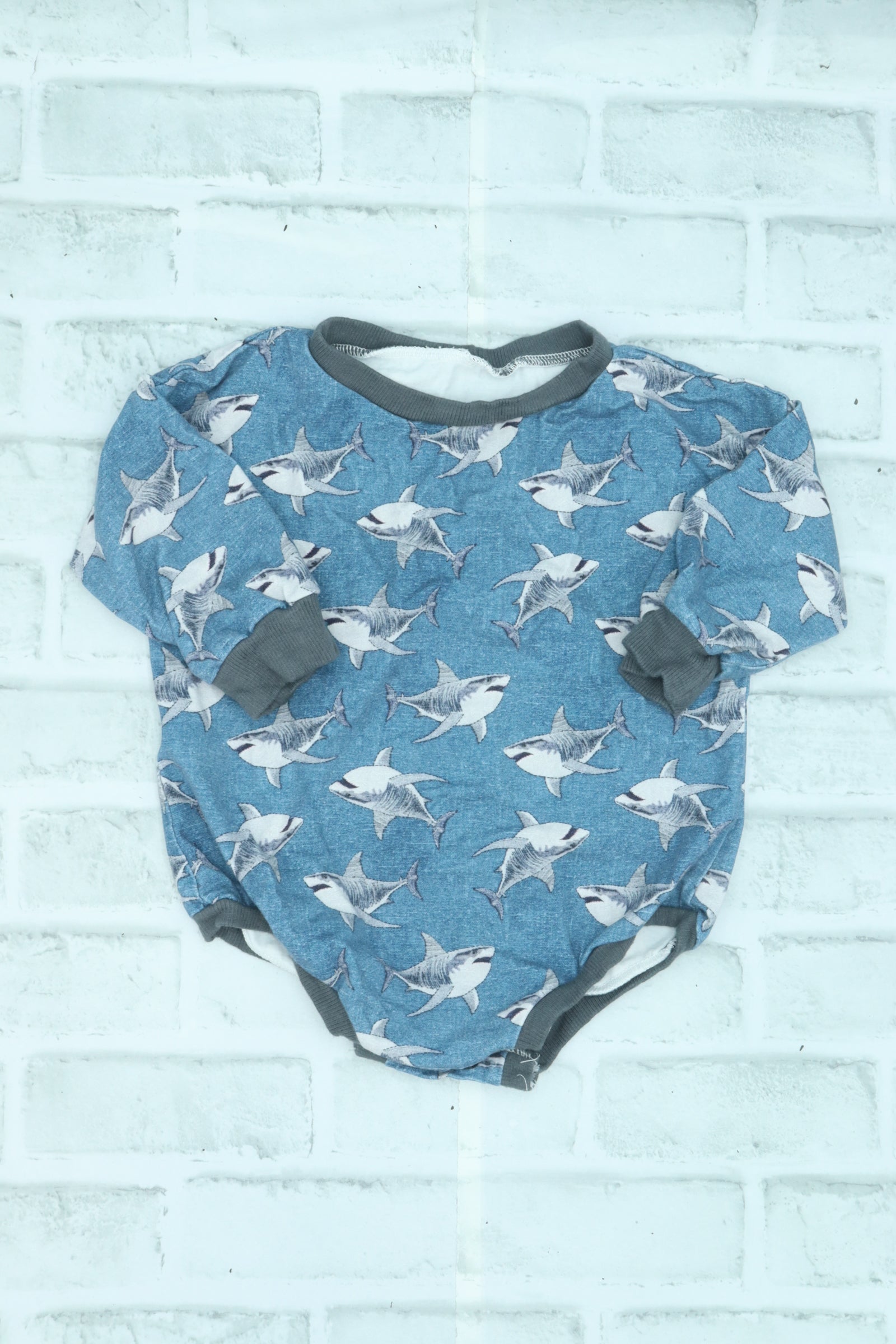Gro By Zo, Preloved, Sharks Diaper Shirt, Approximately 12 Month