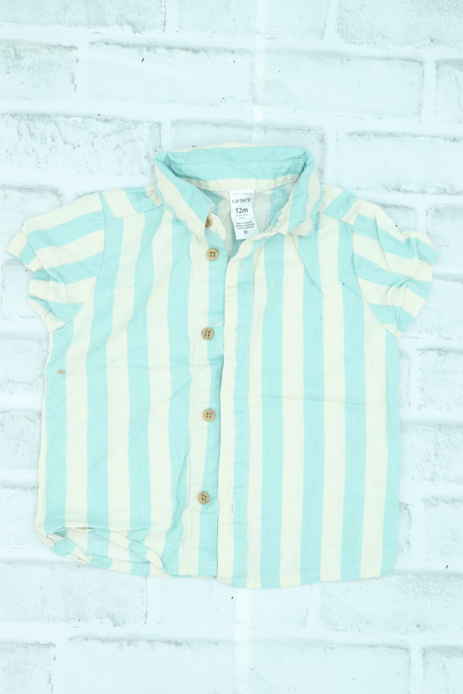 Carter's, Striped Linen Short Sleeve Button Up, 12 Month is backordered and will ship as soon as it is back in stock.