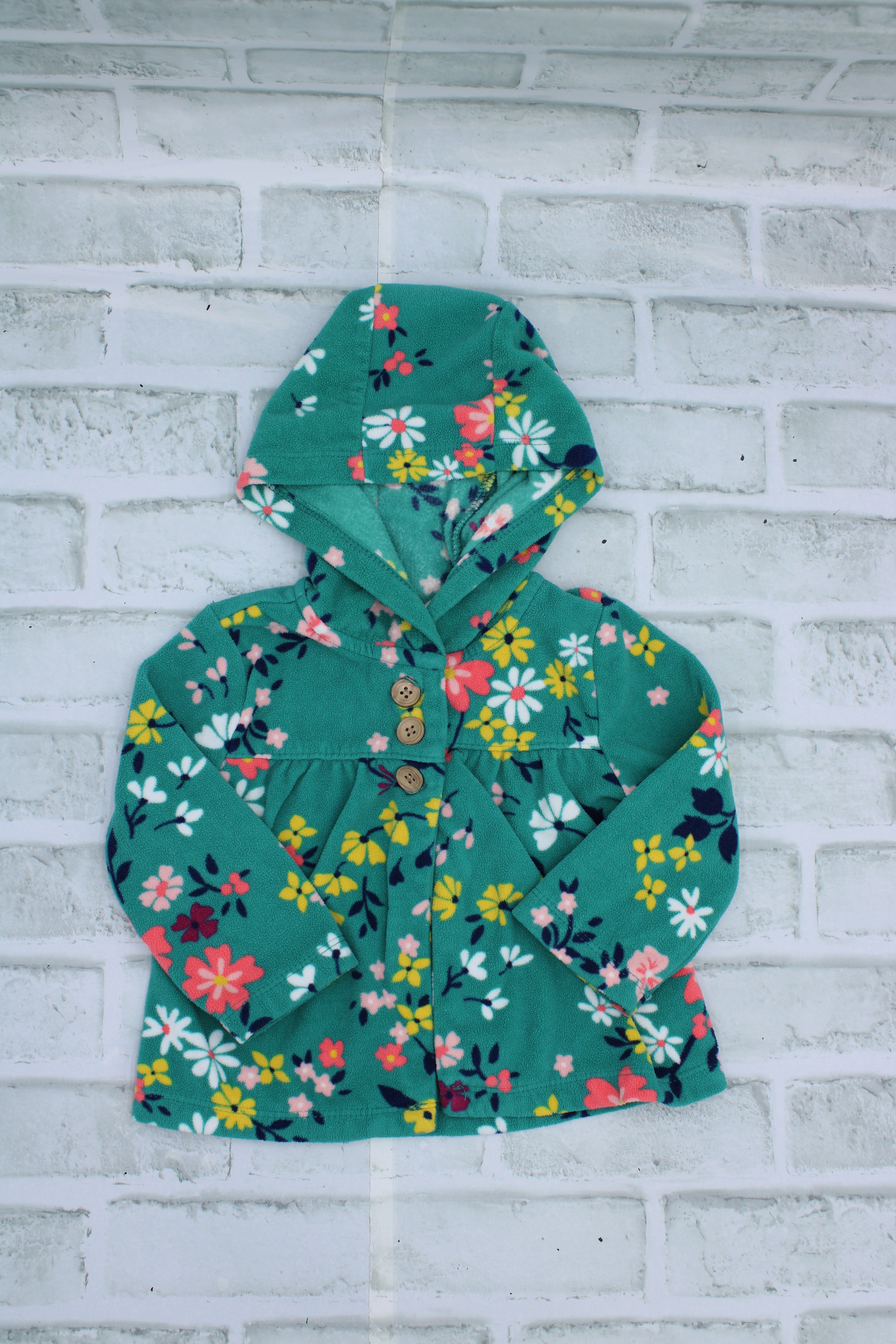 Carters, Green Floral Fleece Hoodie, LIKE NEW, 9 Months