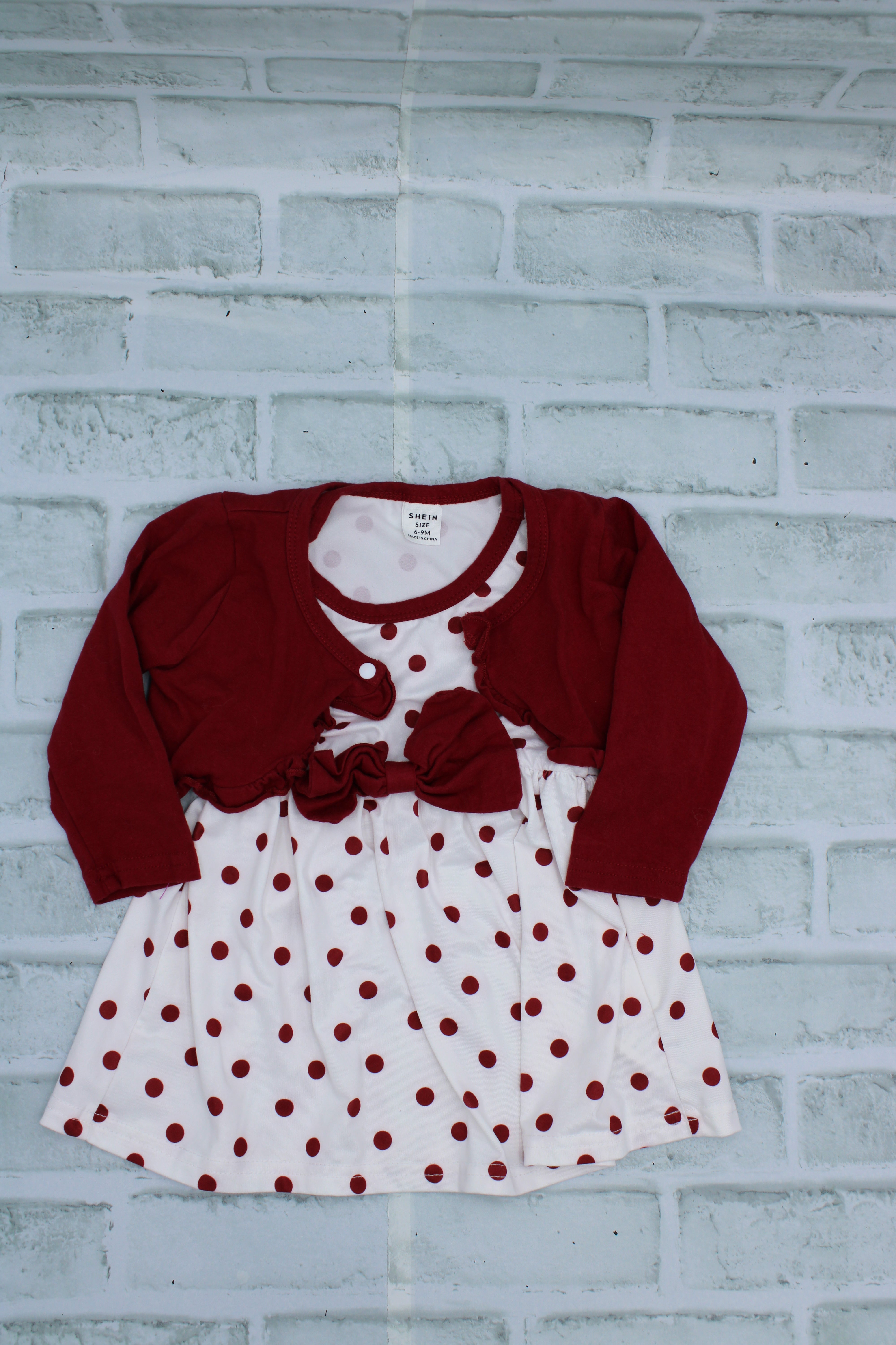Shein, White Polka Dot Dress with Red Cardigan, 6-9 Months