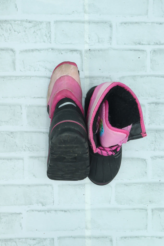 Unknown Brand, Pink Winter Boots with Pull String Closure, GUC due to dirt staining, Size 12 is backordered and will ship as soon as it is back in stock.