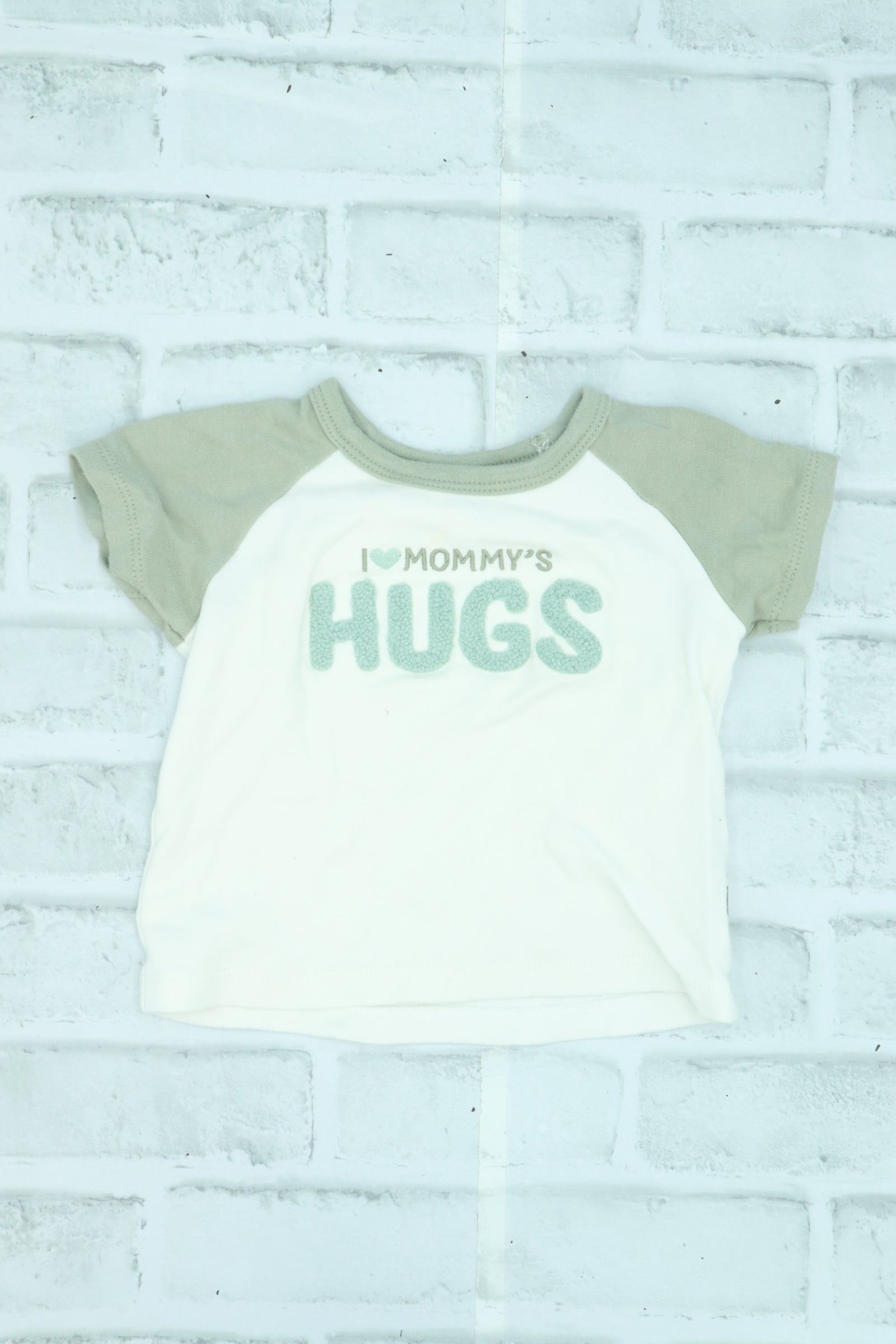 Rabbit + Bear, "I Love Mommy's Hugs" Top, small stain on chest, 18 Month is backordered and will ship as soon as it is back in stock.