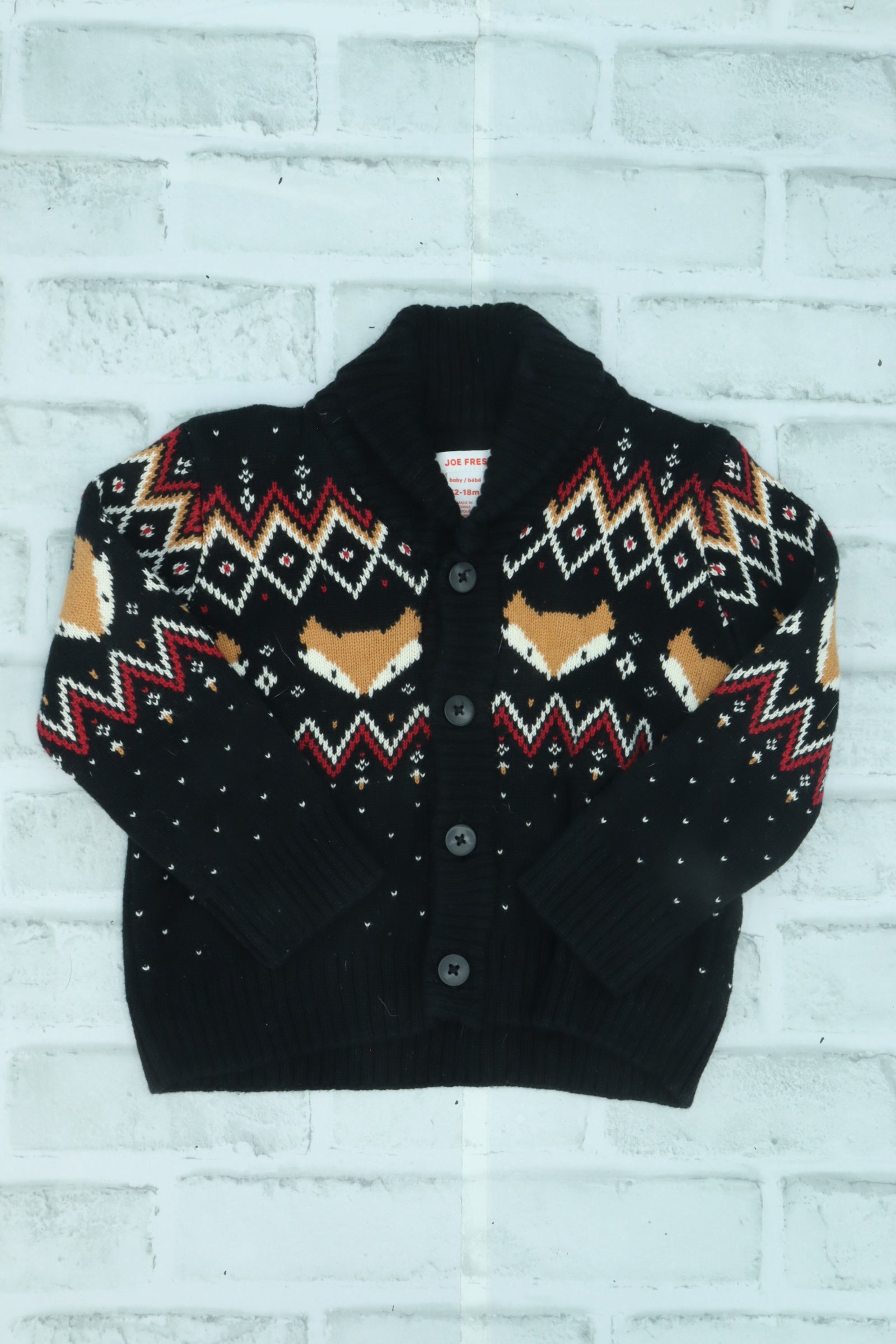 Joe Fresh, Knit Button Up Fox Sweater, 12-18 Months