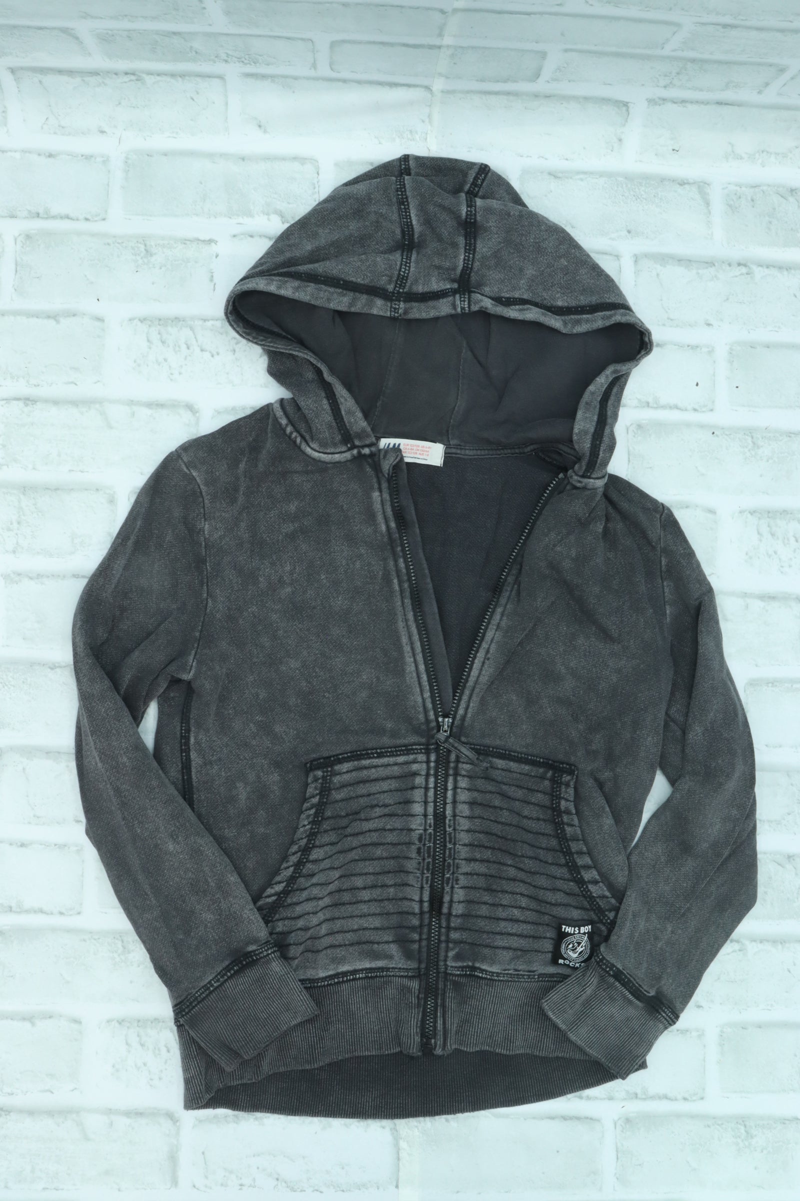 H&M, Grey Zippered Hoodie, small stain inside hood, Size 6-8