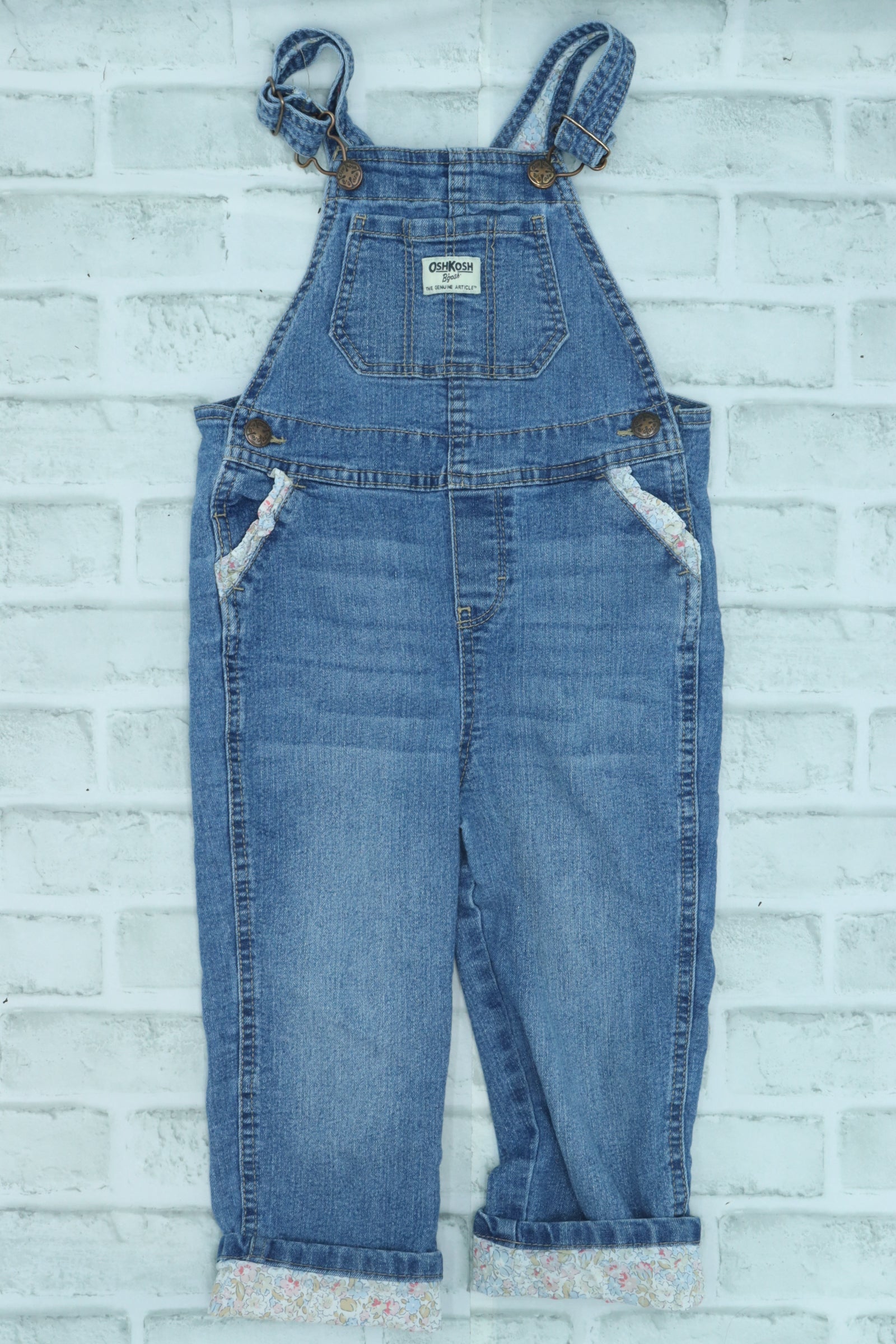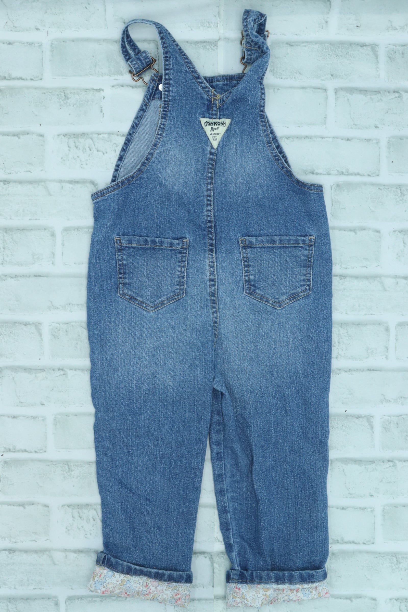 Osh Kosh, Denim Overalls with Floral Cuffed Hems, 4T