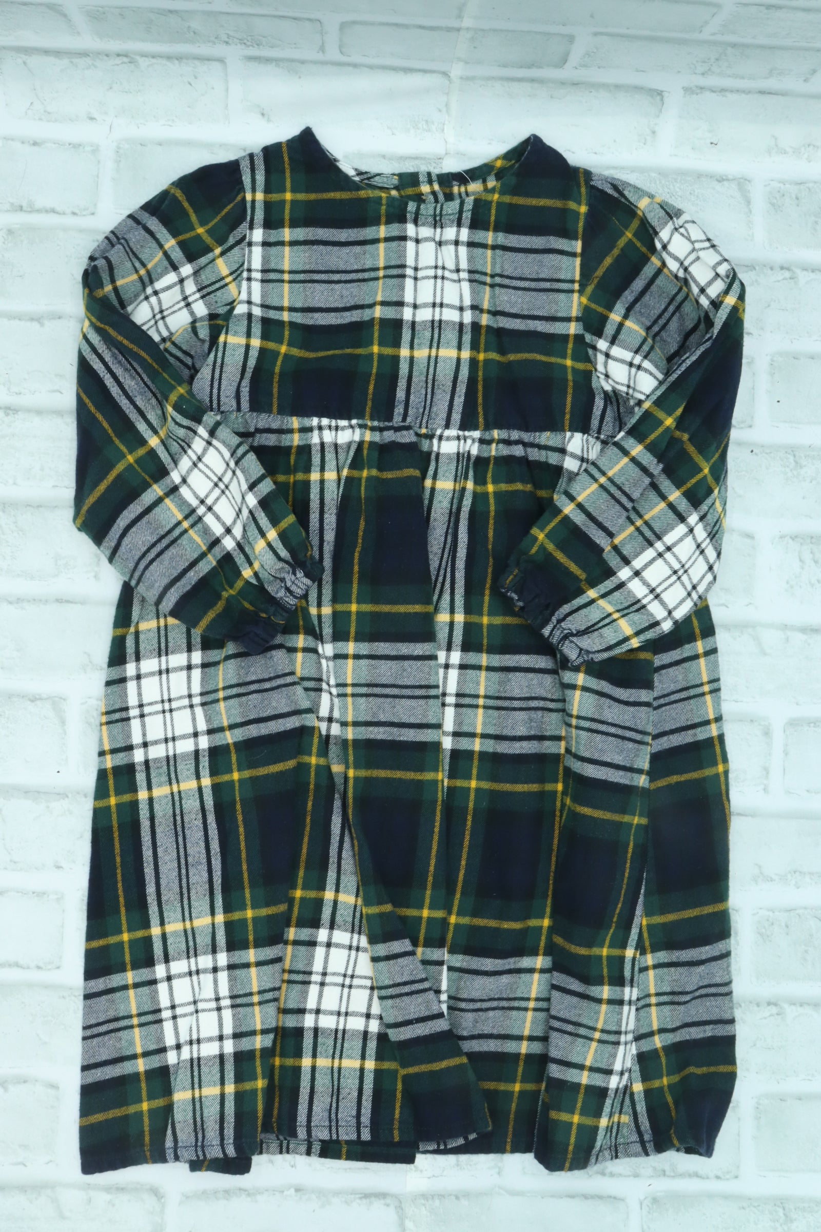 Rise Little Earthling, Green Plaid Dress, 100% Organic Cotton, Size 5-6