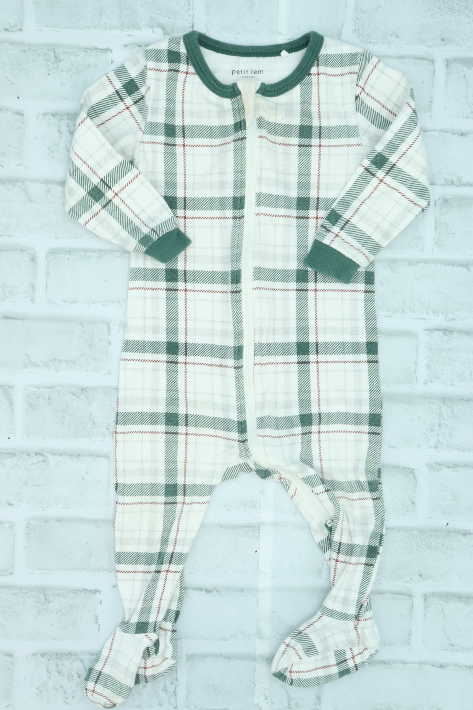 Petit Lem, Plaid Sleeper with Two Way Zipper, GUC due to staining, 9 Month is backordered and will ship as soon as it is back in stock.